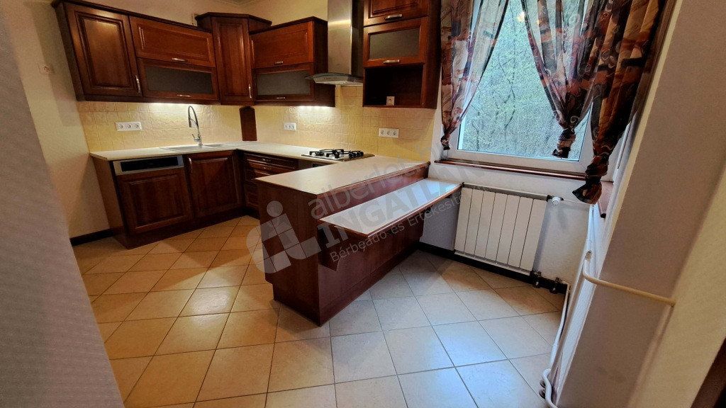 A beépített sütő, mosogatógép és gáz főzőlap van elszívóval. A mikrónak ki van alakítva a helye. A hűtőt, mosógépet kérésre hoznak. Az ablakokon redőny és szúnyogháló. Az ingatlan bár bútorozatlan rengeteg beépített szekrénnyel, könyvespolccal és más tárolóval rendelkezik.