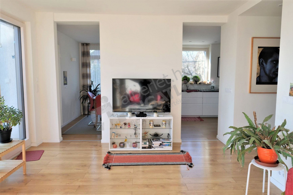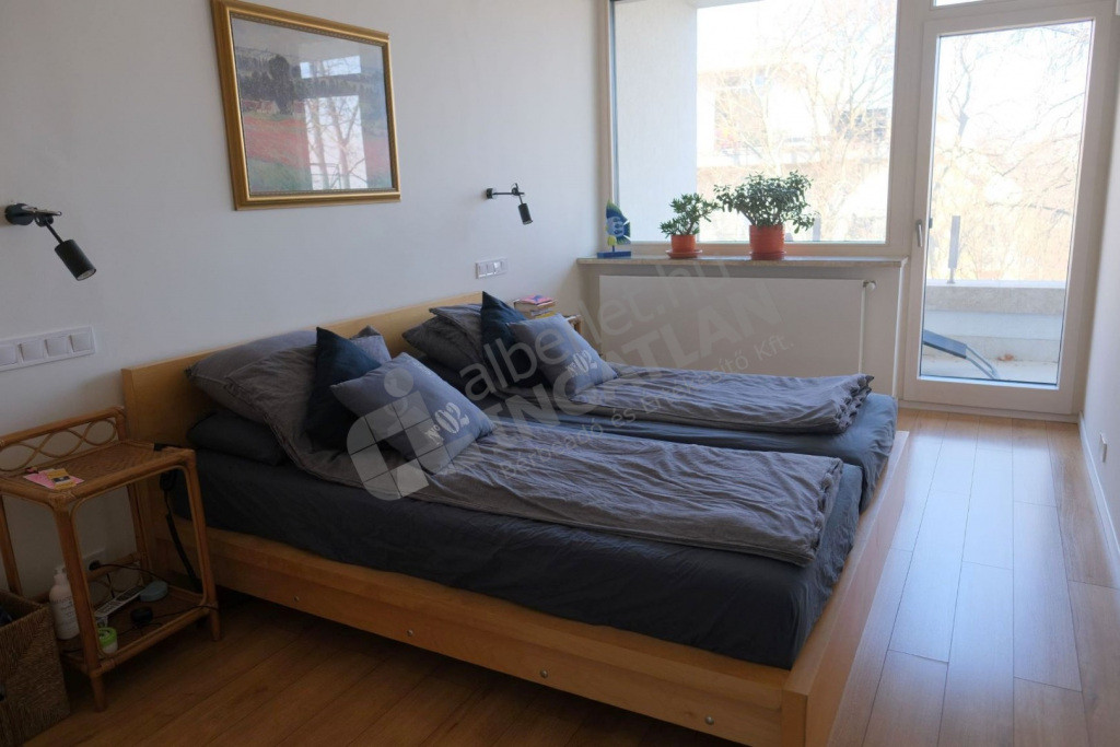 A lakás egy csendes, háromlakásos társasházban található, amely négy éve teljes körű felújításon esett át. A parkosított kert hatalmas lombos fái biztosítják a lakás intimitását, a kiváló hőszigetelés pedig az energiahatékonyságot.