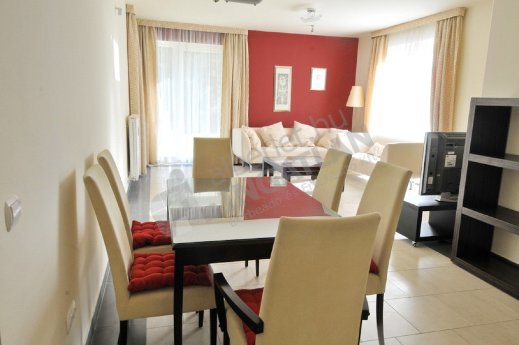 II.kerület Hársliget Lakóparkban ÚJÉPÍTÉSŰ, TERASZOS, KERTKAPCSOLATOS, LUXUS lakás hosszútávra kiadó. A környezet gyönyörű, 24 órás őrző-védő portaszolgálat működik, valamint közös beltéri medence és szauna használat is benne van az árban. A környéken kiváló a közlekedés. 98 nm-es a lakás, NAGYON IGÉNYESEN BERENDEZETT, TELJESEN FELSZERELT, további bútorok biztosíthatóak. Az előtérben hatalmas gardrób helyiség található, valamint külön WC. A nappaliból nyílik a konyha, ahol még mosókonyha is van ( kis félszoba ). Ezen kívül még két külön bejáratú háló is van, valamint gyönyörű fürdőszoba zuhanyzóval és káddal. Klímás lakás, házközponti fűtés van, közös költség 93.000 Ft, mindent tartalmaz, kivéve a víz és áramfogyasztást. Tároló és 2 db mélygarázshely is tartozik hozzá. Háziállat hozható.