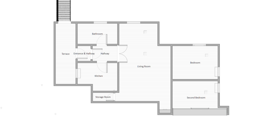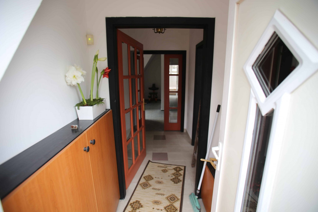 A lakás kertkapcsolattal rendelkezik, házon kívül kialakított lépcső vezet fel a bejárathoz.