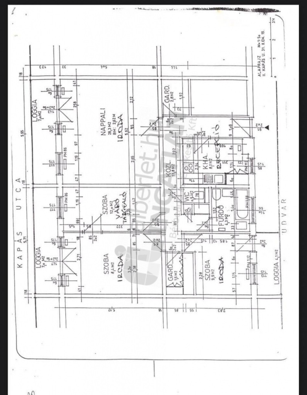 a Kapás utcában kiadó egy 107 m²-es, világos, klimatizált, 4 szobás lakás, 2 fürdőszobával, a 2. emeleten.