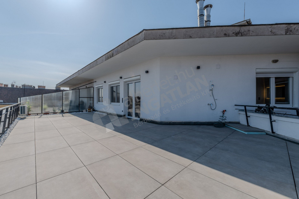 - Panorámás terasz ZUHANYZÓVAL, kerti csappal, ahol szauna beszerelésére is van lehetőség