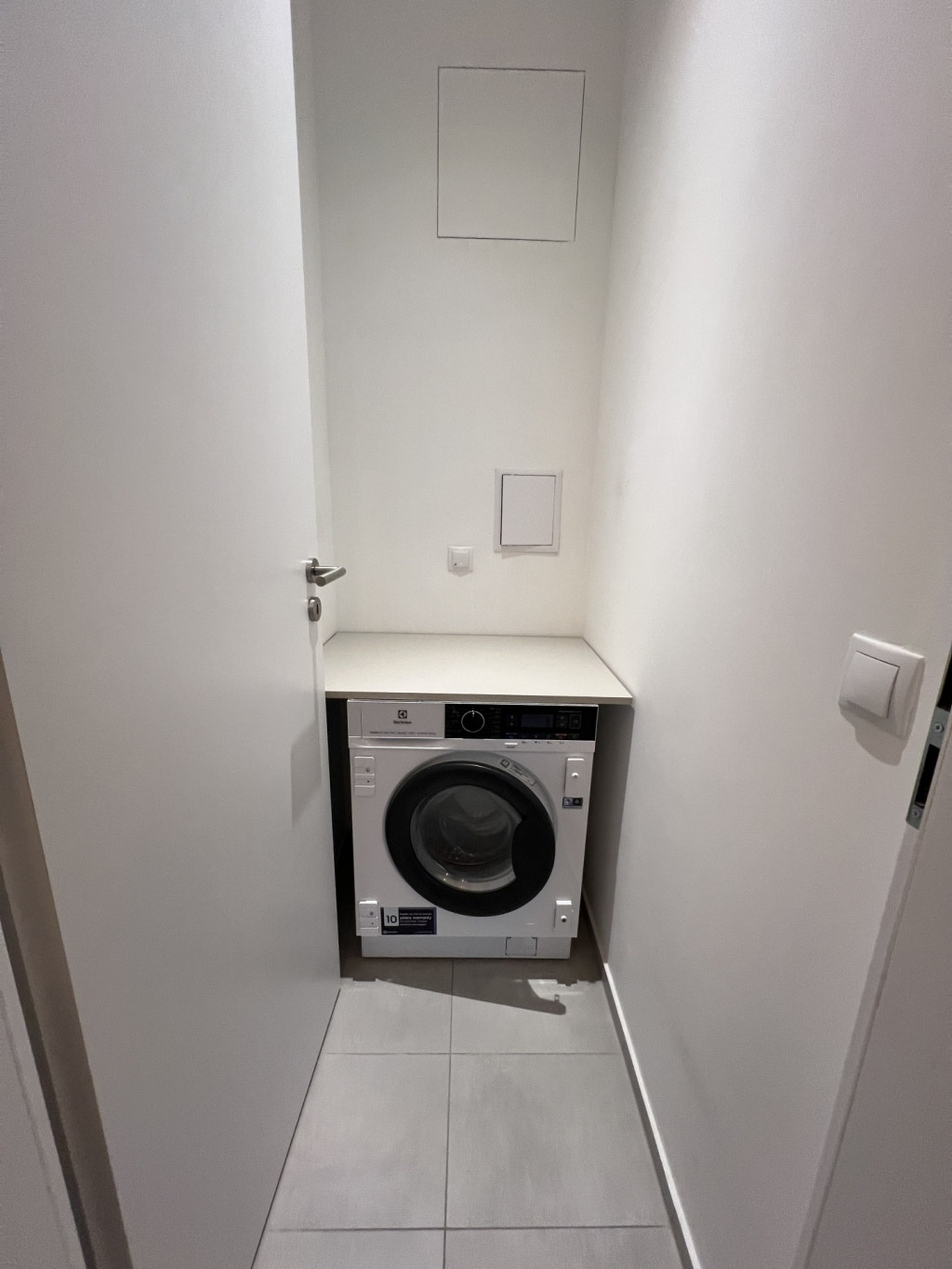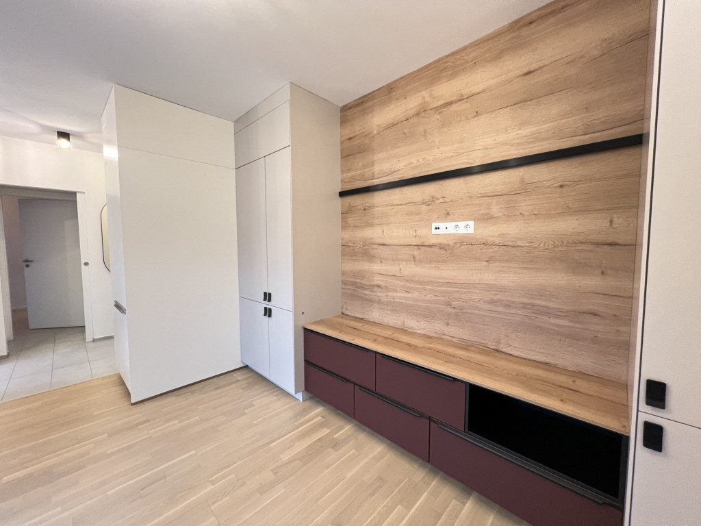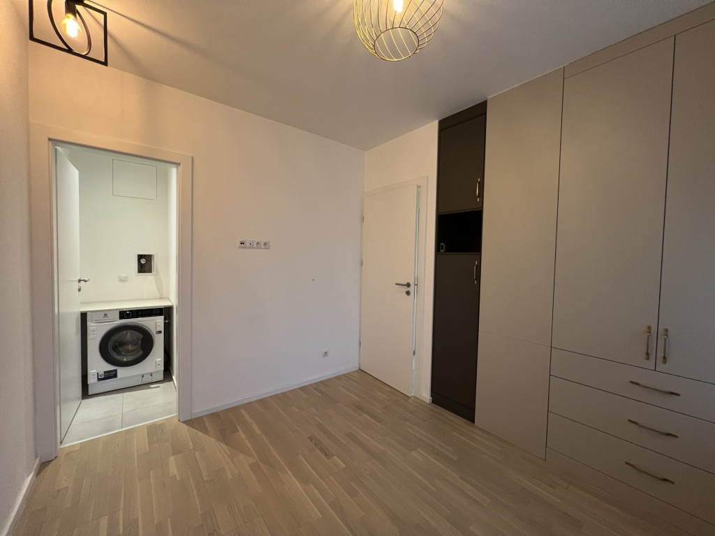 GÉPESÍTETT (mosó-szárítógép, mosogatógép, hűtő, tűzhely, sütő), ELEKTROMOS REDŐNNYEL és mennyezeti hűtés -fűtéssel felszerelt.