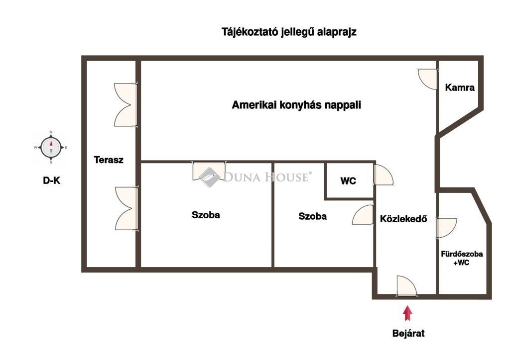 A lakás helyiségei:2 hálószoba, amerikai konyhás nappali, fürdőszoba WC-vel, külön vendég WC, háztartási helyiség.Kisállat hozható.