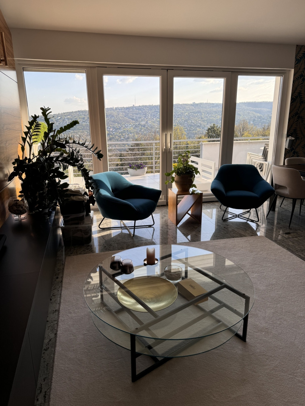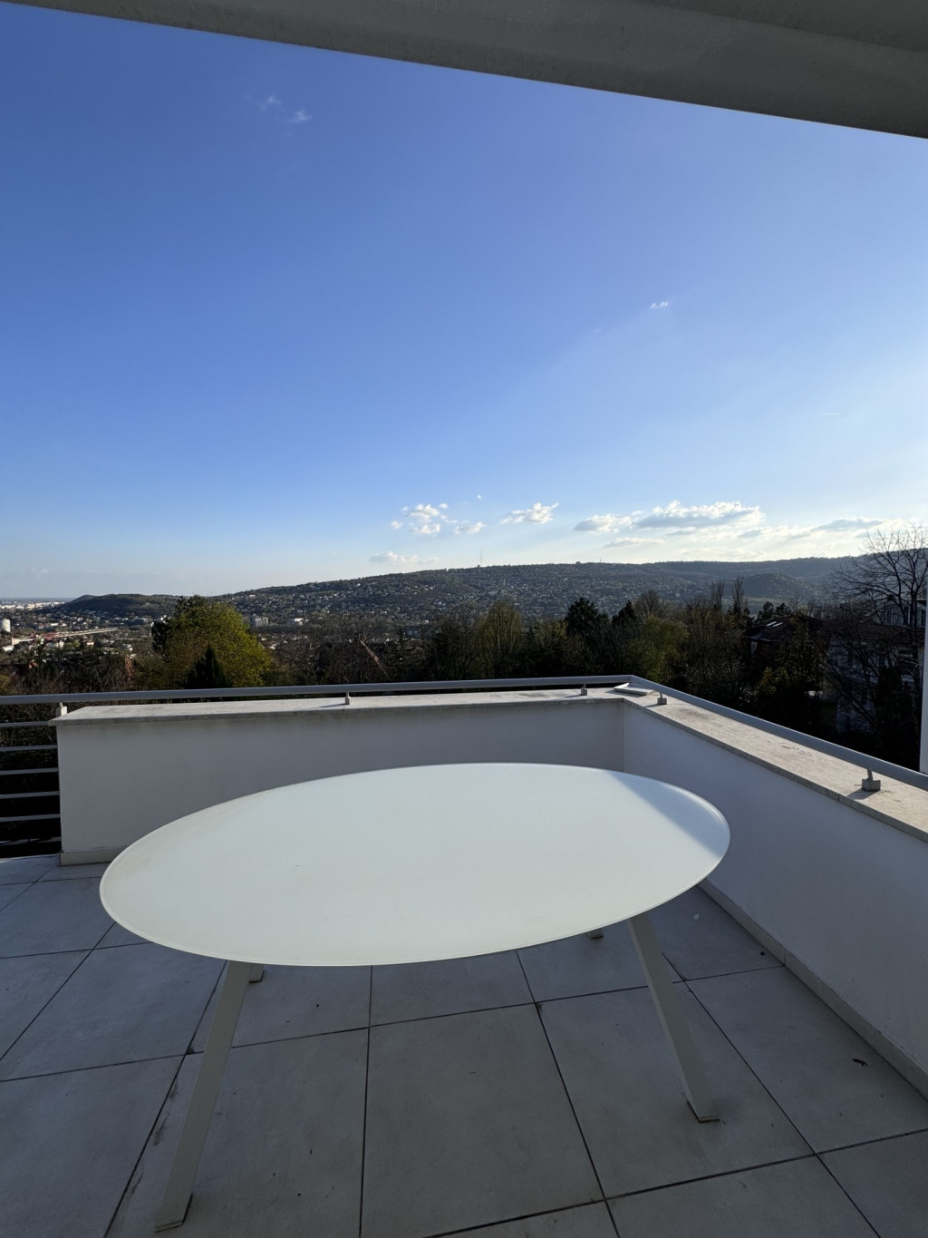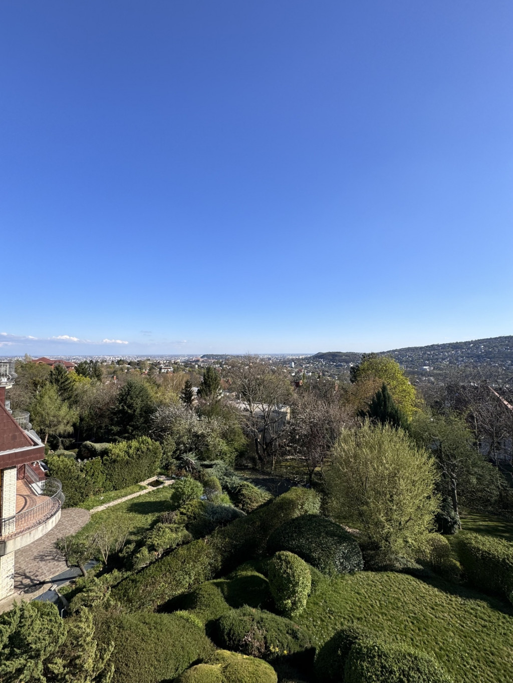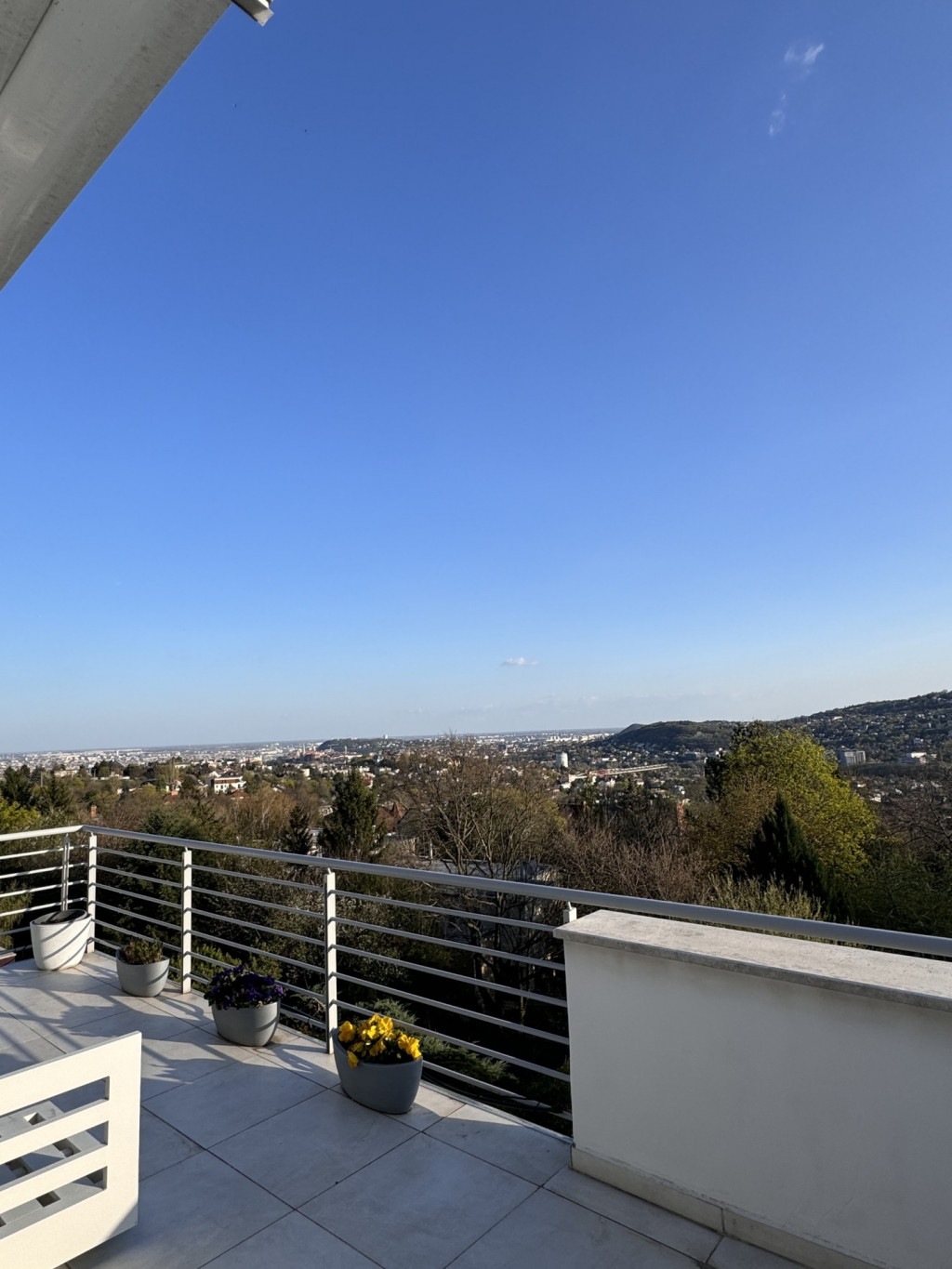 Nappaliból és az abból nyíló tágas erkélyről egész Budapestre gyönyörű őanpráma nyílik