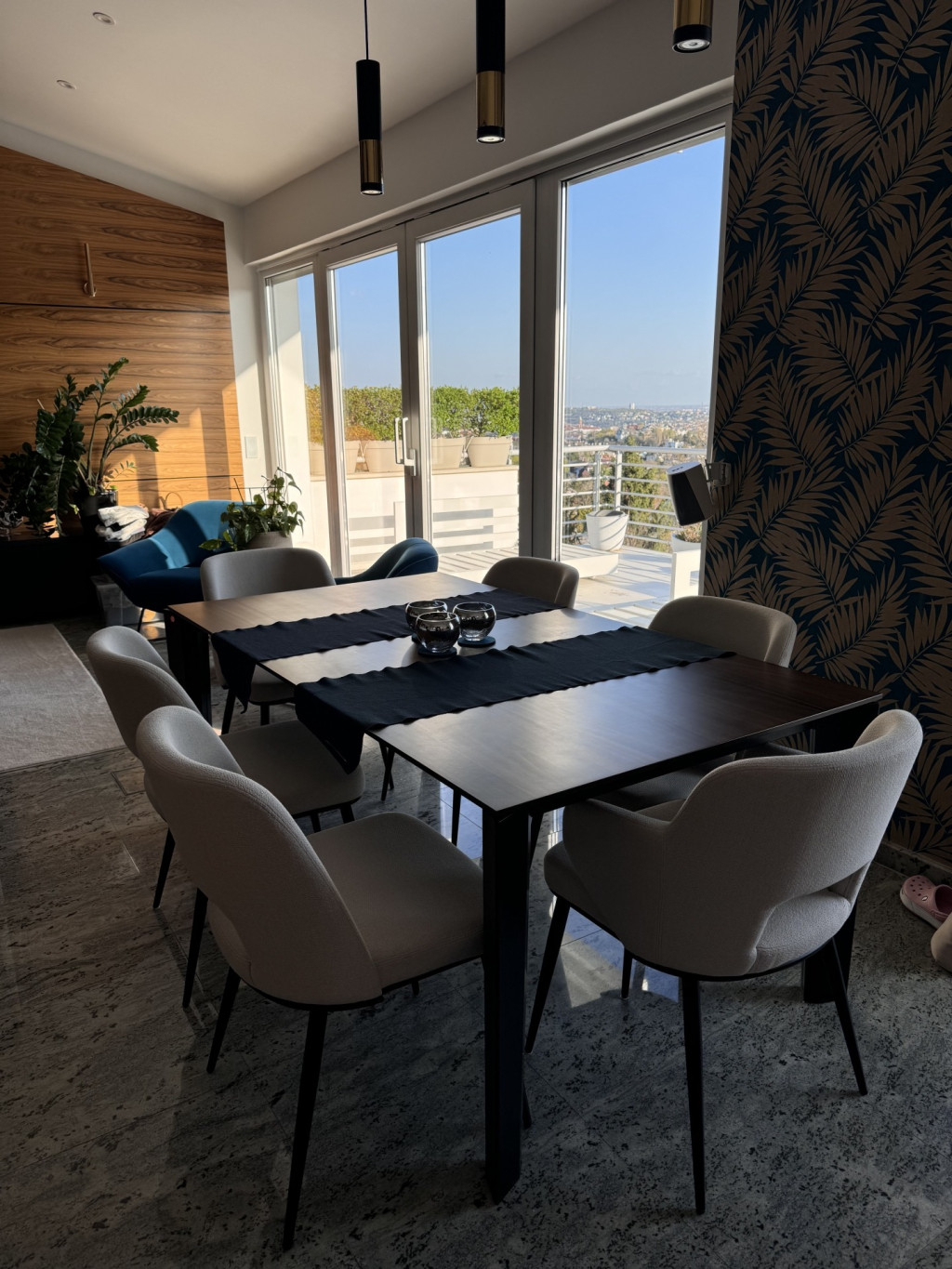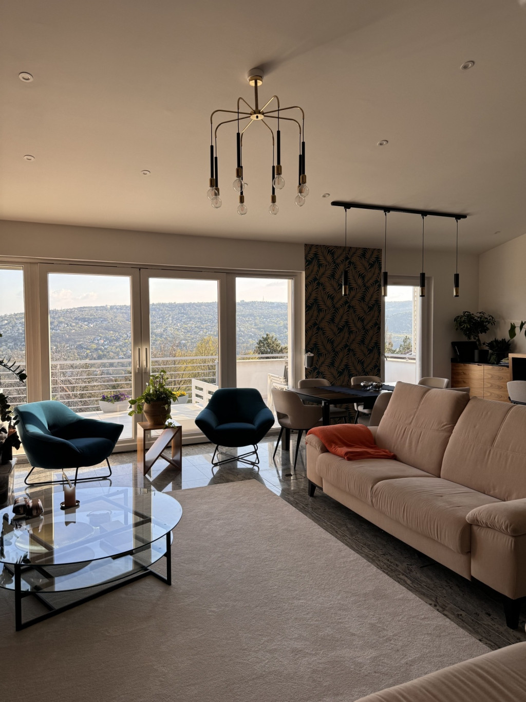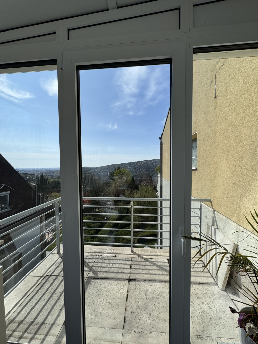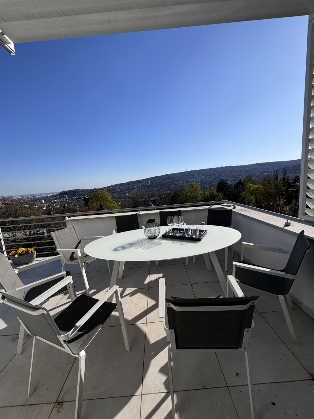 Nappaliból és az abból nyíló tágas erkélyről egész Budapestre gyönyörű őanpráma nyílik