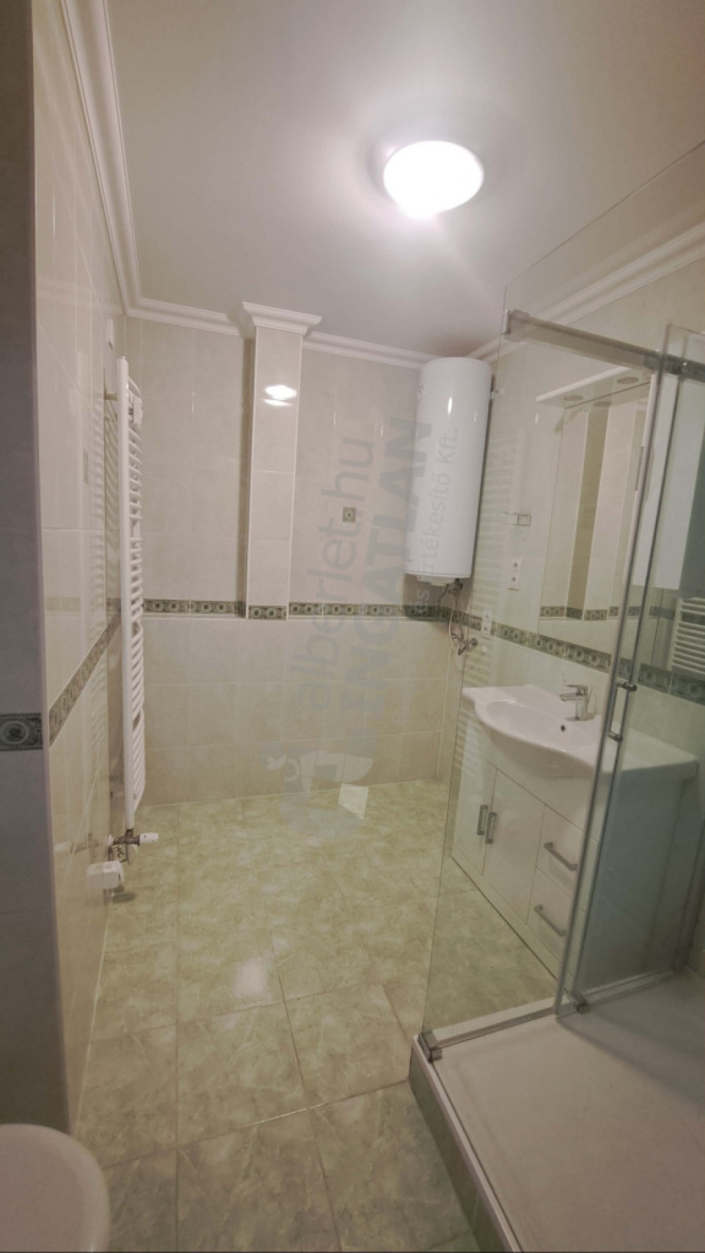 - 5 nm-es fürdőszoba zuhanyzóval, mosdóval és WC-vel, mosógép igény szerint