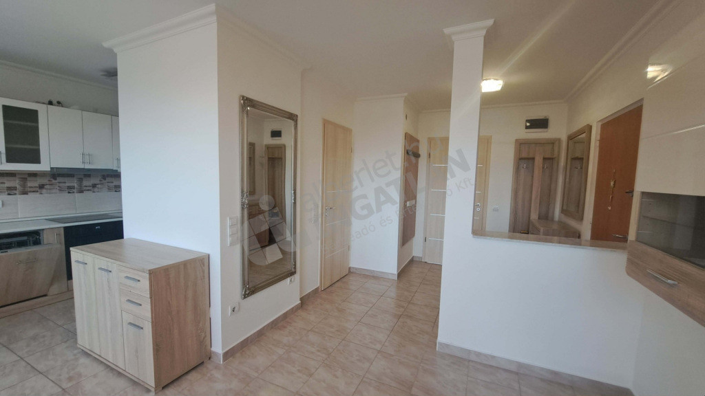 A konyhában kombi hűtő, mosogatógép, elektromos sütő, elektromos főzőlap van elszívóval. A hálószobában tágas beépített szekrény található.