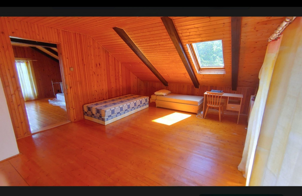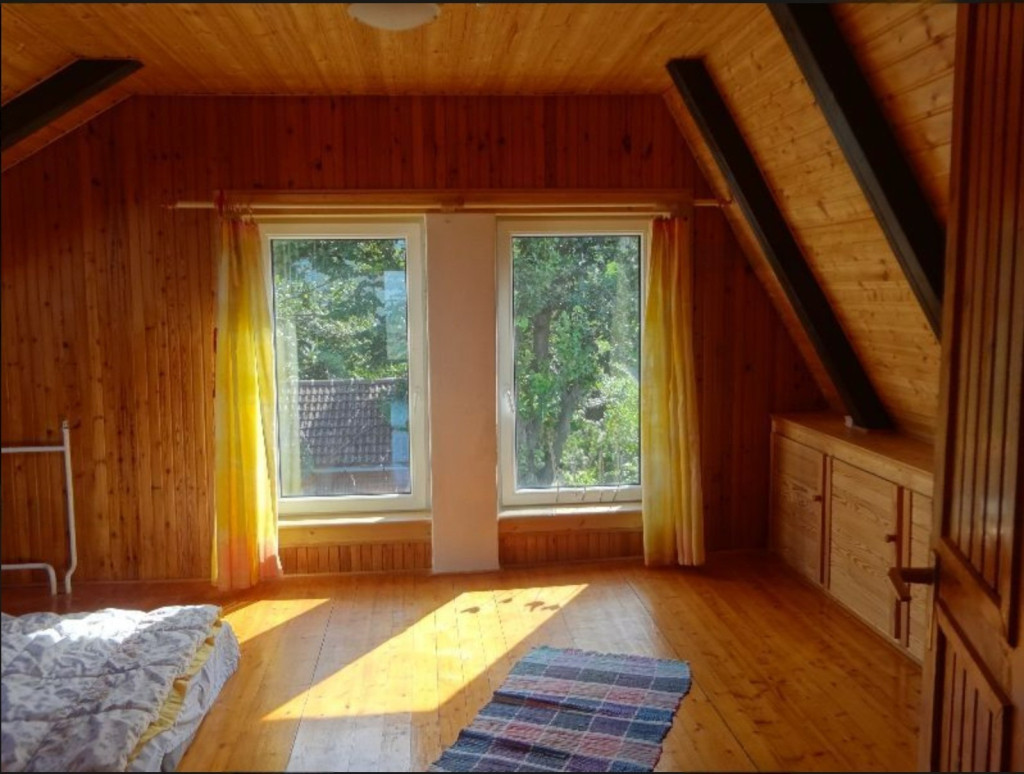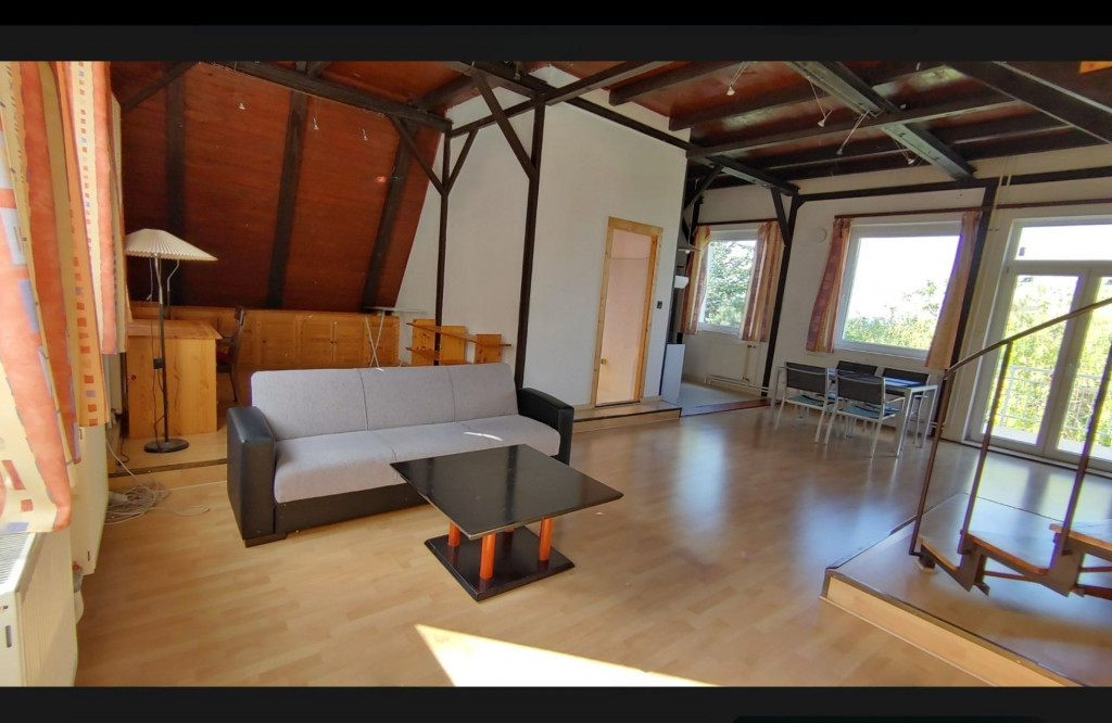 Bright, 110 sqm duplex apartment available in a quiet green area, located on the upper floor of a family house.