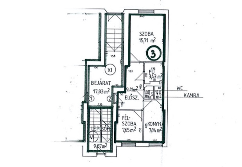 A lakótérben nappali, egy félszoba, egy étkezőpultos konyha, kamra, egy zuhanyzós fürdőszoba, különálló wc-vel és előszoba található.
