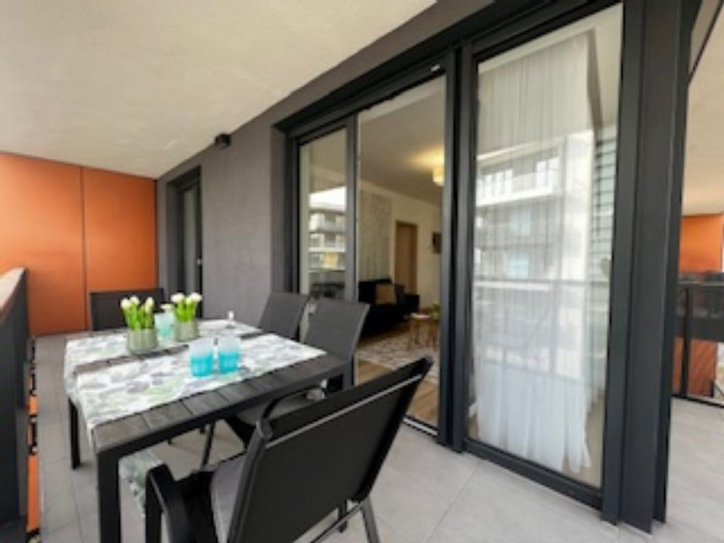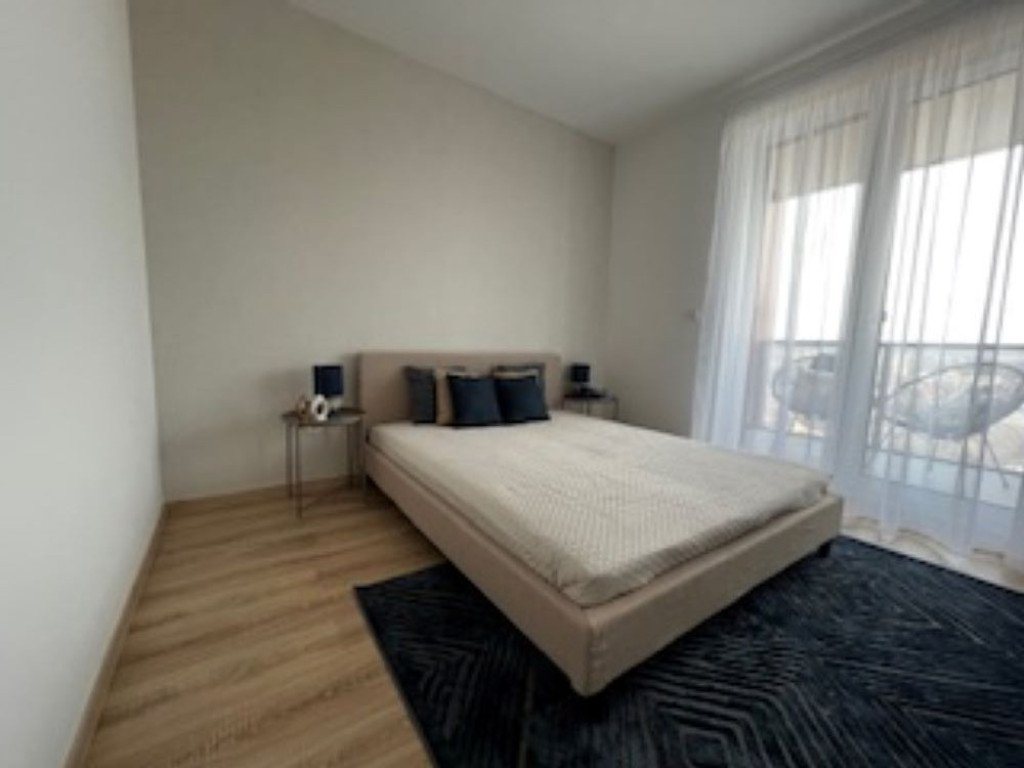 Új építésű lakóparkban 11.emeleti, a budai hegyekre és a Dunára is panorámás, nappali plusz 2 hálószobás luxuslakás kiadó.