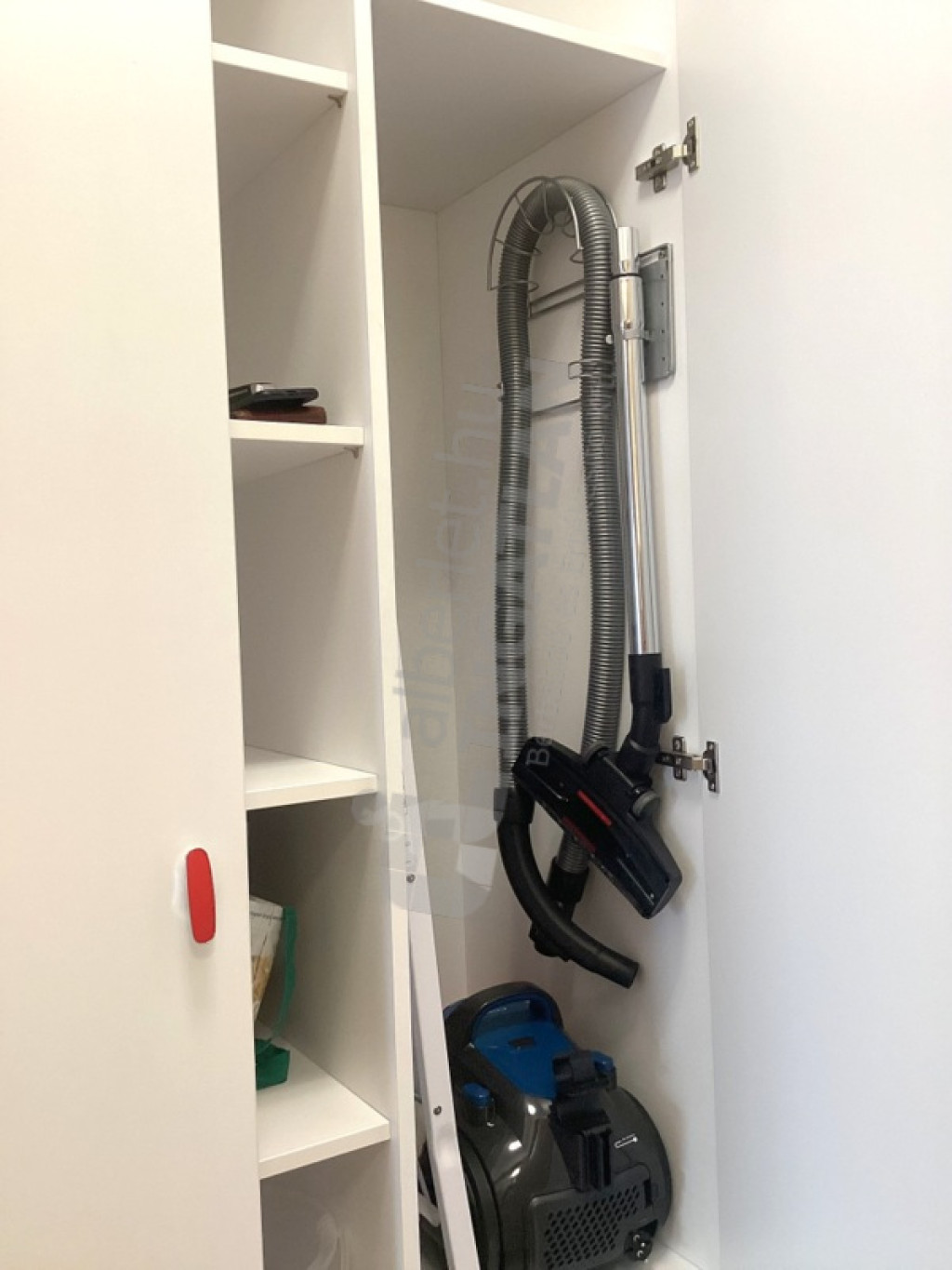 Az előszobában beépített gardróbszekrény segíti a tárolást.