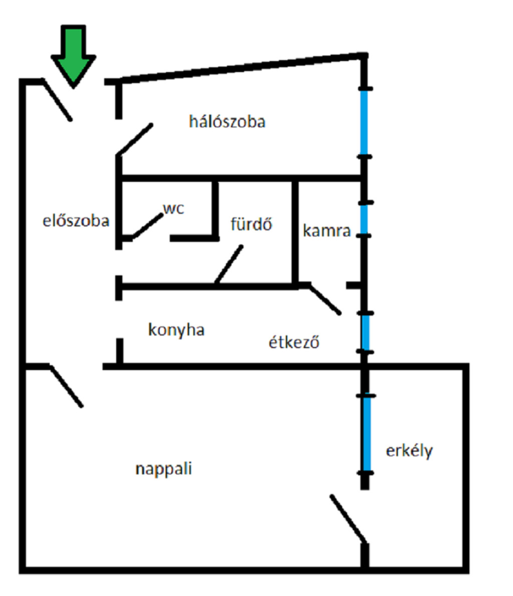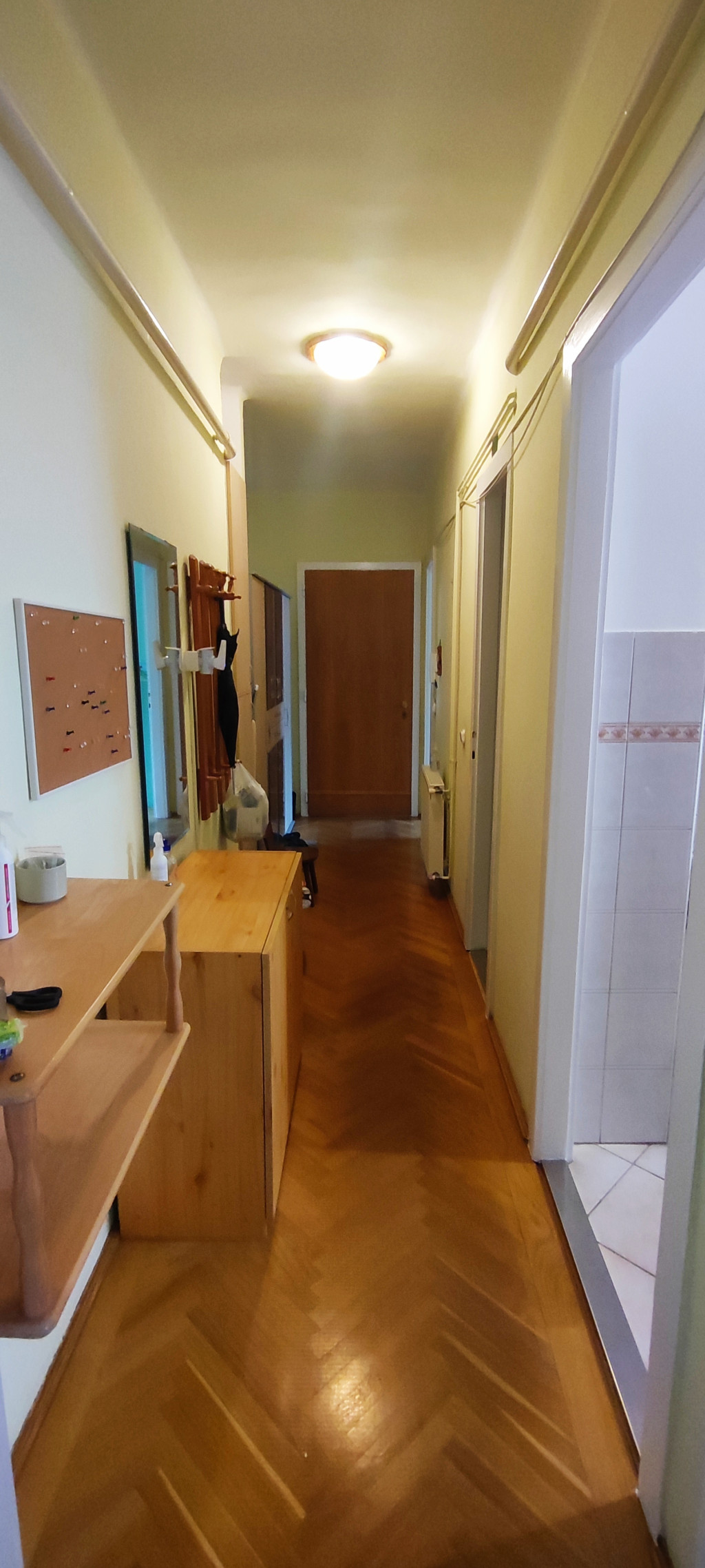 Minden helyiség külön bejárattal rendelkezik. A nappali parkettás (22 nm-es), melyhez tartózik egy tágas, 8 nm-es erkély is.