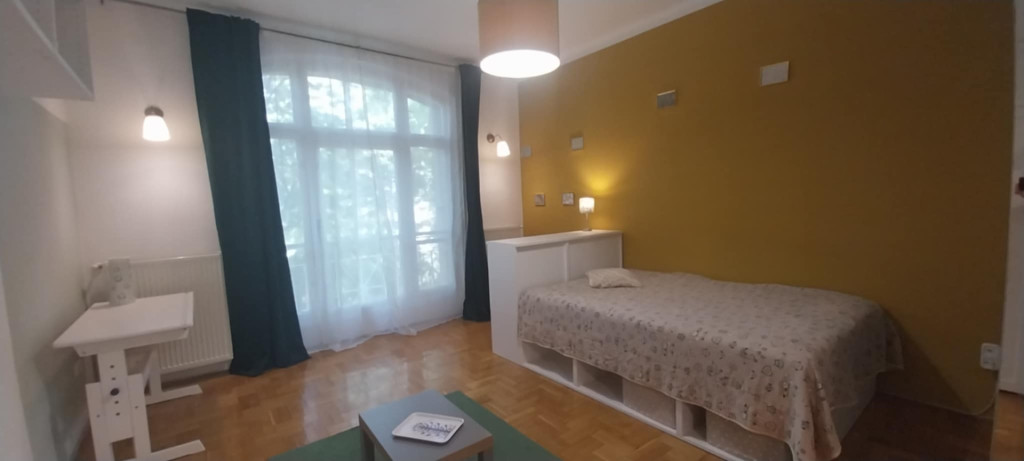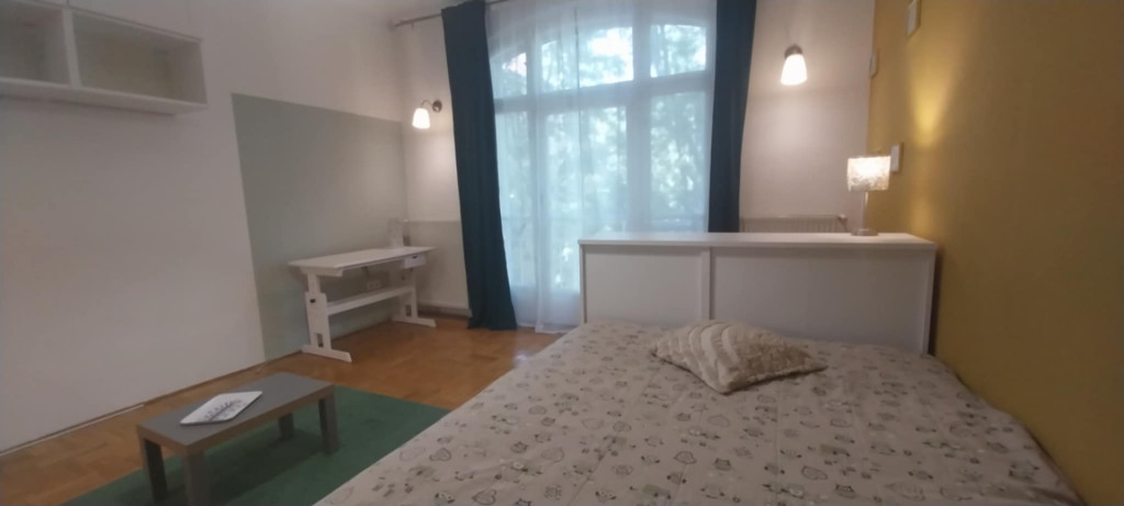 A Bécsi út közelében, a Hunor utcában kiadó egy 2.emeleti, 35 négyzetméteres, 1 szobás, egylégterű lakás. Felújított, gépesített és ignyesen berendezett. A társasháznak gyönyörű, rendezett belső kertje van.