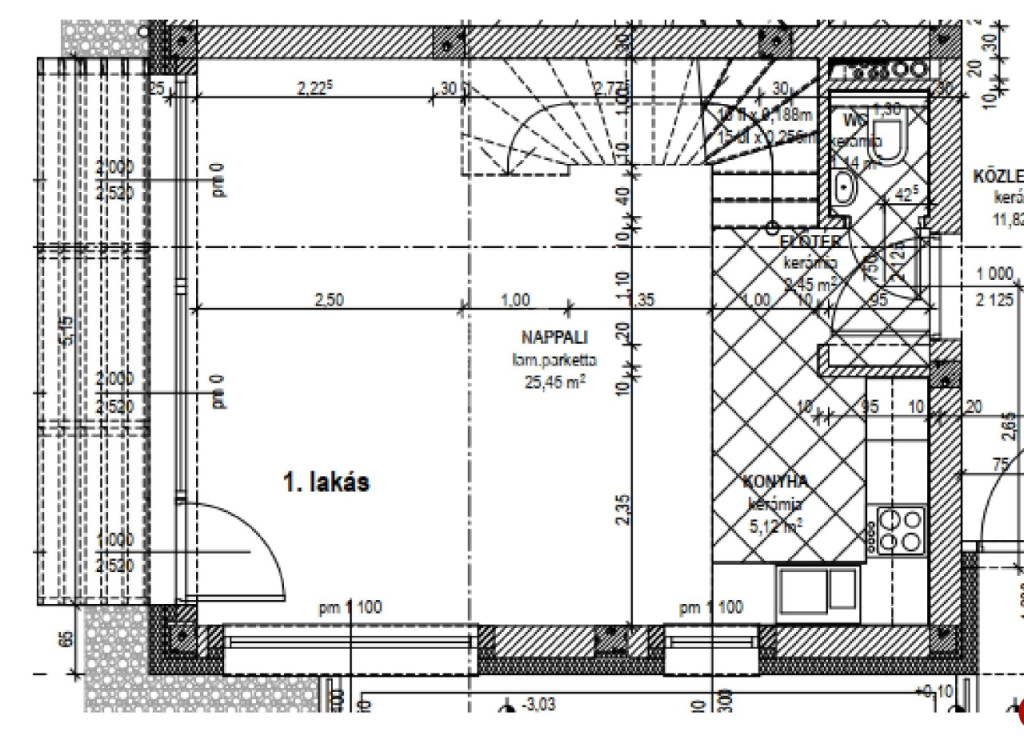 pincei mosókonyha/tároló: 12 m² (mosdó, mosógép csatlakozó)