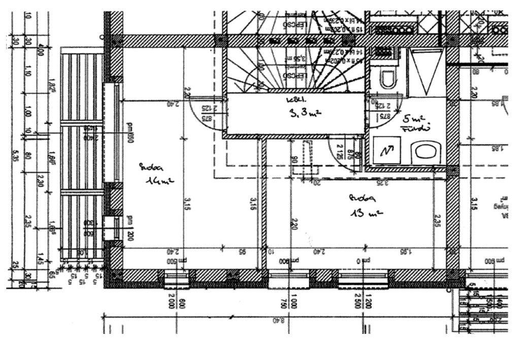 1 szoba: 13 m²