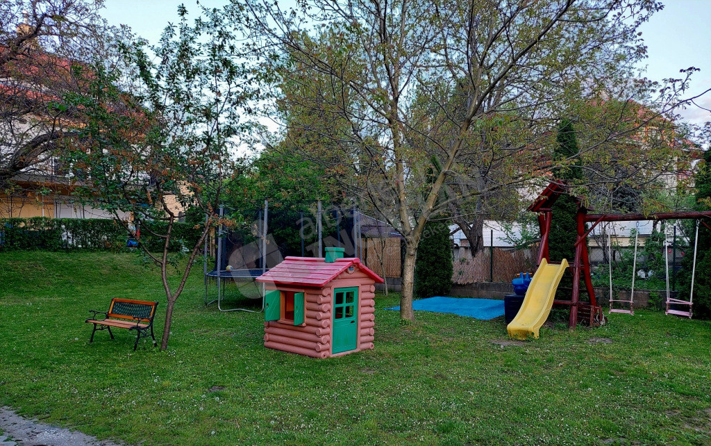- zárt, gondozott udvar hatalmas kerttel, játszótérrel, homokozóval és trambulinnal.