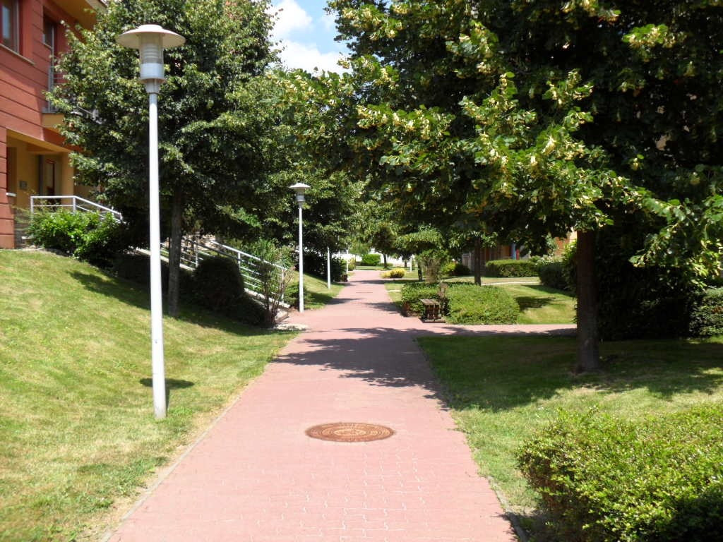 A parkosított udvaron a gyerekek biztonságosan játszhatnak, illetve kiváló lehetőség nyílik pihenésre, sétára.