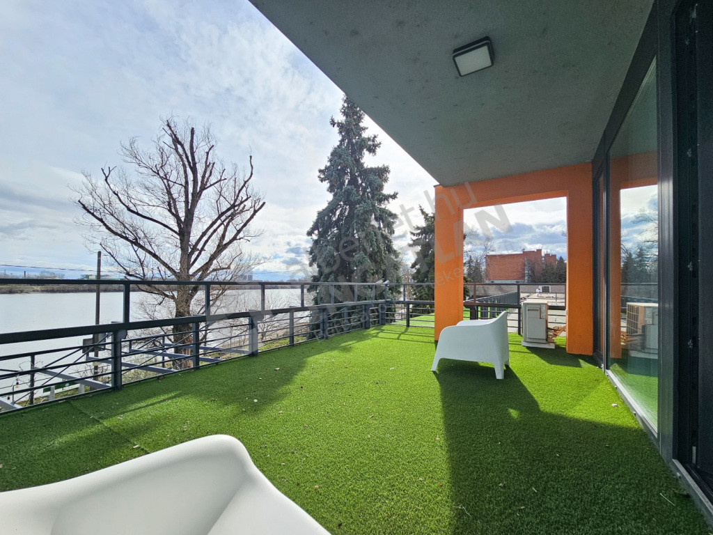 A tágas nappaliból megközelíthető a 29 négyzetméteres terasz, ahonnan a Duna látványa tárul elénk. A reggeli kávé vagy az esti borozás a teraszon különleges élménnyé válik, miközben a víz közelsége nyugalmat és feltöltődést biztosít.