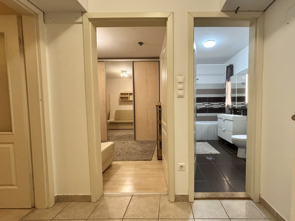 A lakás elrendezése nagyon baráti, előszobából balra nyílik az amerikai konyhás nappali amíg jobbra a hálószobák(2), fürdő és az illem helyiség.