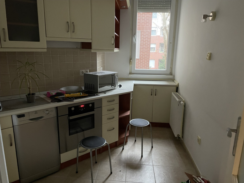 A lakás ÉNY-i tájolású, világos, tágas nappalival (kanapéval), BEÉPÍTETT, GÉPESÍTETT KONYHÁVAL (mosogatógép, sütő, mikró), valamint KÁDAS FÜRDŐVEL rendelkezik.