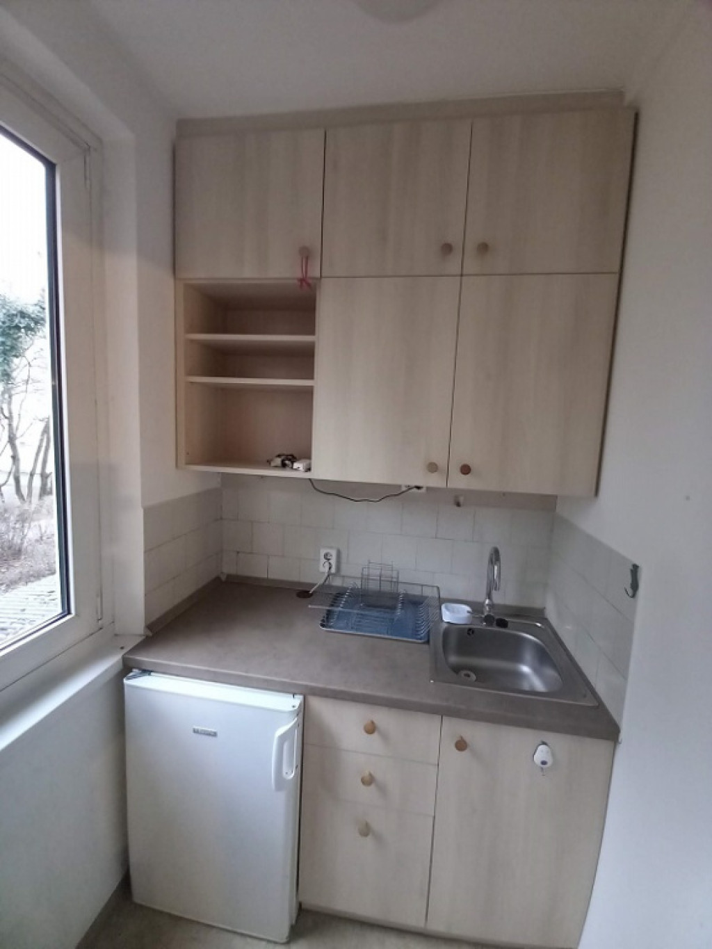 Rómaipart közelében, parkos lakótelepen 4 emeletes házban kiadó első emeleti garzon lakás.