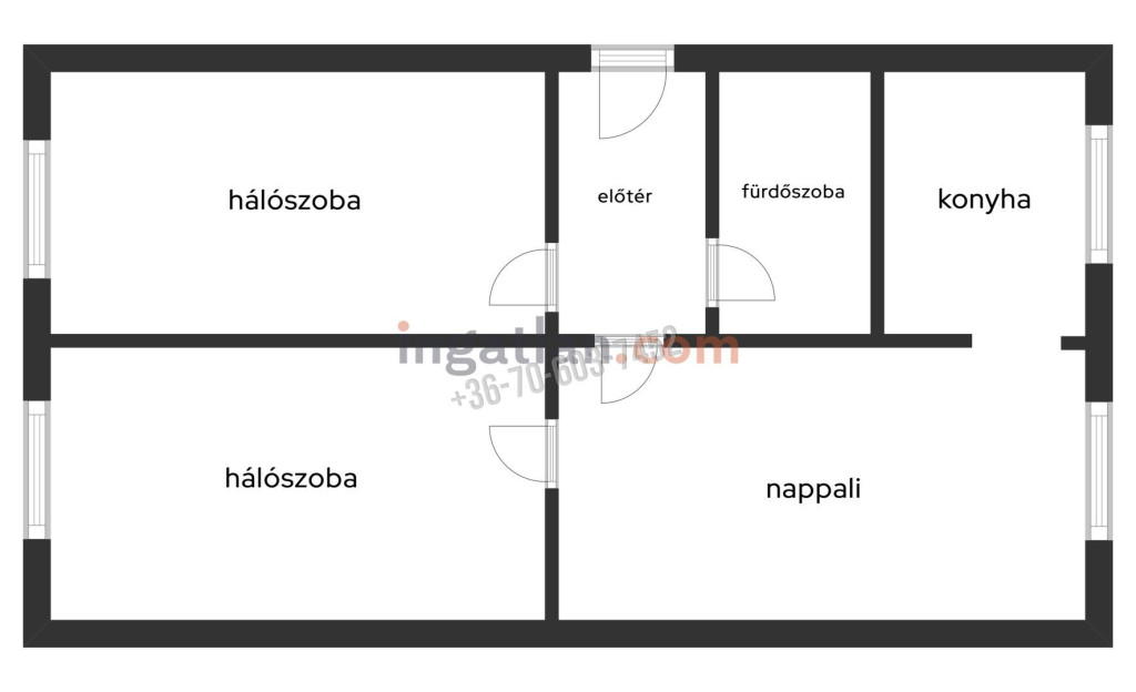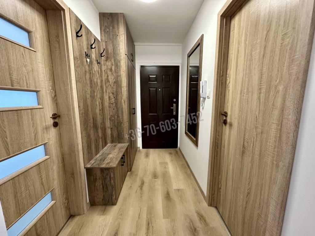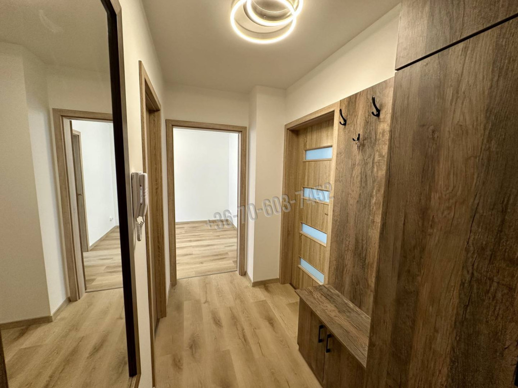 A lakás elrendezése kiváló: tágas, világos nappali, valamint két különnyíló hálószoba biztosít kényelmes életteret. A fürdőszoba zuhanyzós, a konyhában beépített sütő, főzőlap és elszívó is rendelkezésre áll. Az előszobában praktikus beépített szekrény került kialakításra.