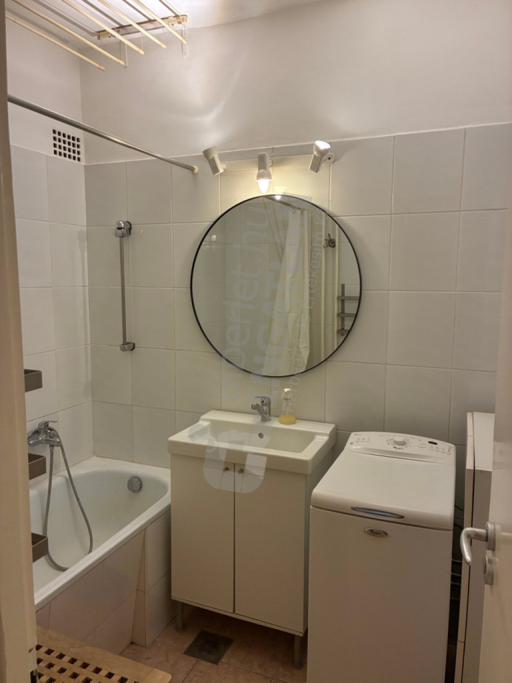 Kádas fürdőszoba, mosógéppel.
