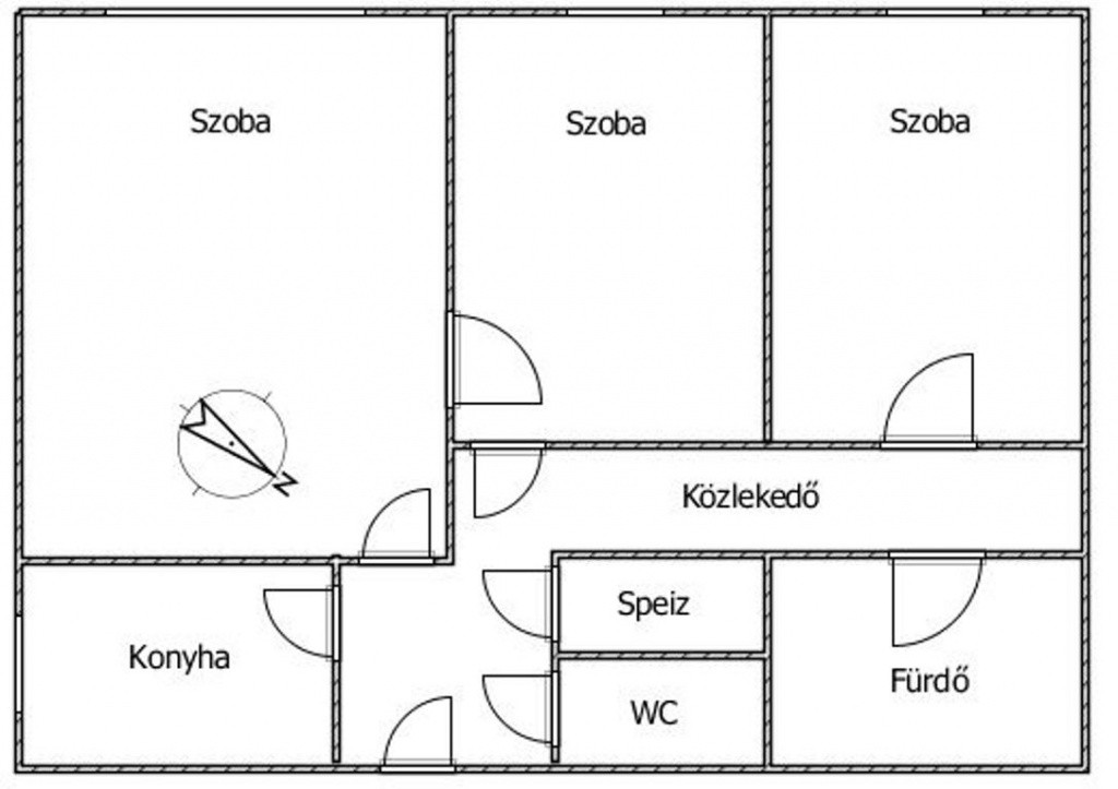 A lakás nagyon jó elosztású, szobái külön nyílnak, a fürdőszoba és a WC külön helyiségben található.