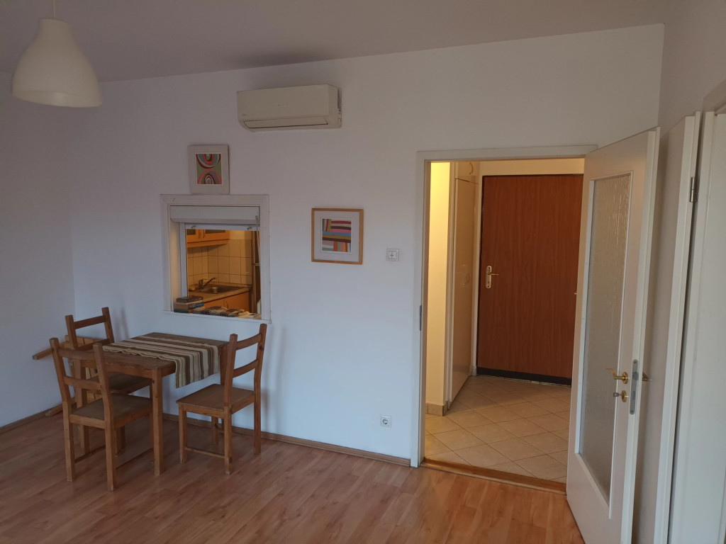 A Ferenc körút metrómegállótól pár percre, újszerű, IV. emeleti, 44 m²-es, 1 + 1 fél szobás lakás hosszú távra kiadó.