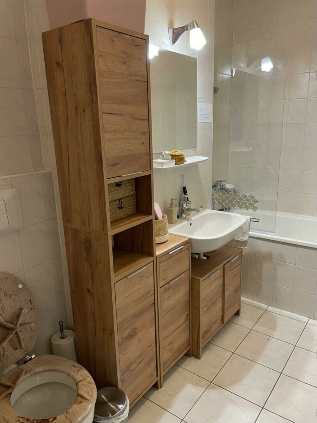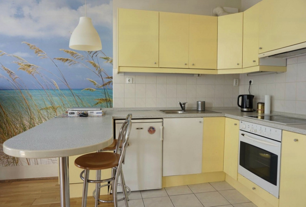 A szoba-konyha egyben helyezkedik el, a fürdőszoba-WC szintén. A fürdő mosógéppel, káddal, szekrénnyel , a nappali egész falat betöltő beépített szekrénnyel felszerelt.