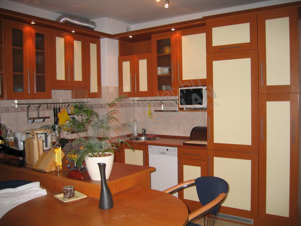 Jó elosztású, élhető, tágas érzetű lakás, profi beépített gépekkel (Siemens kerámialapos főzőlap és elektromos légkeveréses sütő, Siemens mosogató gép, AEG beépített alulfagyasztós kombinált hűtő, szagelszívó, klíma).
