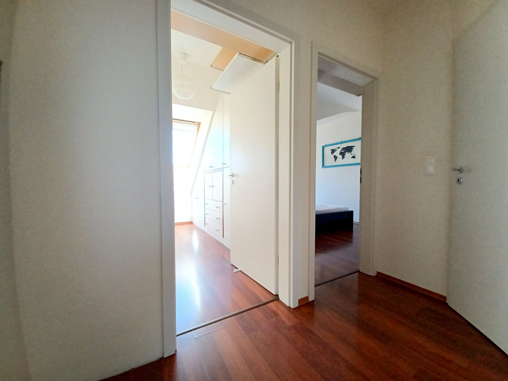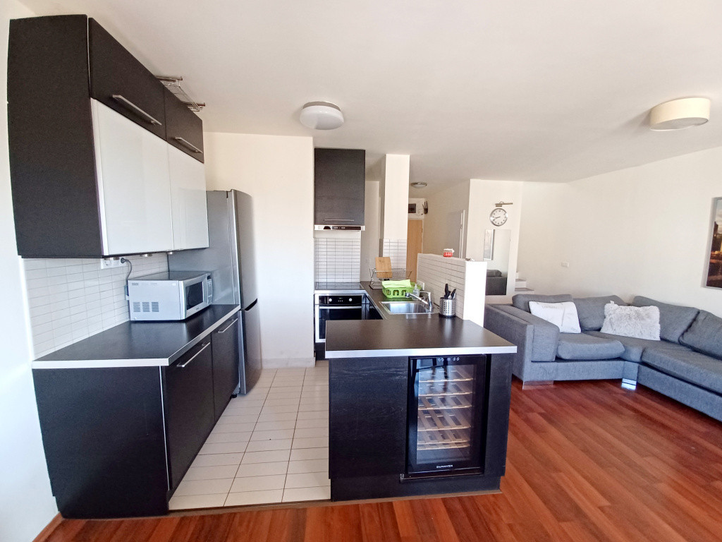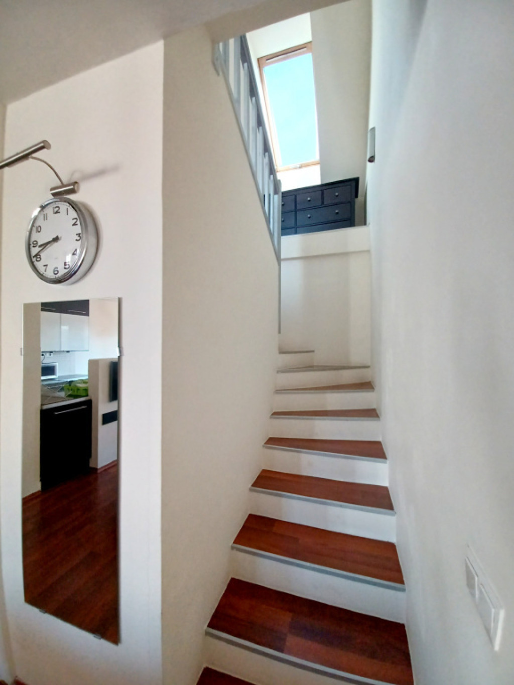 Liftes újszerű társasház tetőtéri, belső kétszintes lakása kiadó.