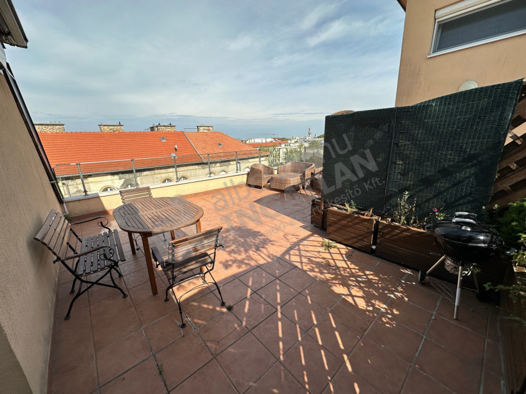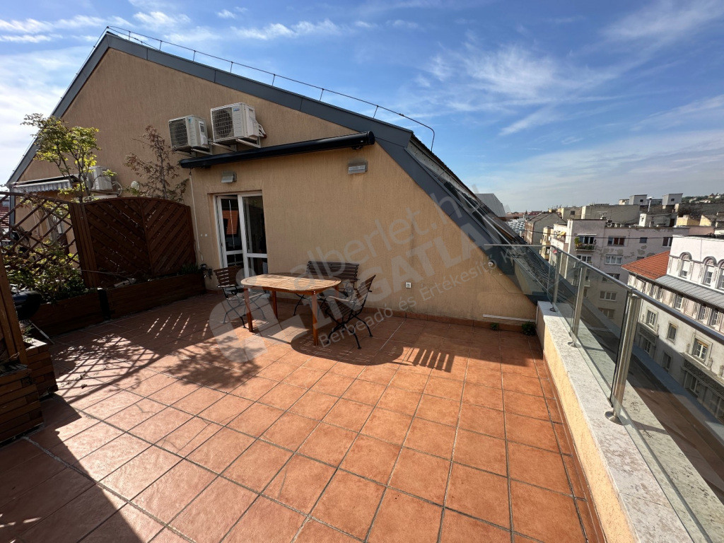 Kinizsi utcában penthouse jellegű, nagy teraszos, két hálószobás lakás kiadó.