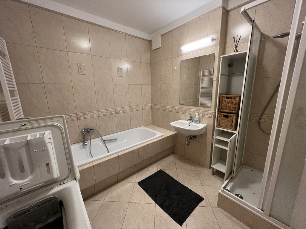Teljeskörűen BERENDEZETT (minőségi kemény fa bútorok és bőr ülőgarnitúra), GÉPESÍTETT (mosógép és mosogatógép is van), KLÍMÁVAL és ELEKTROMOS REDŐNNYEL is felszerelt.