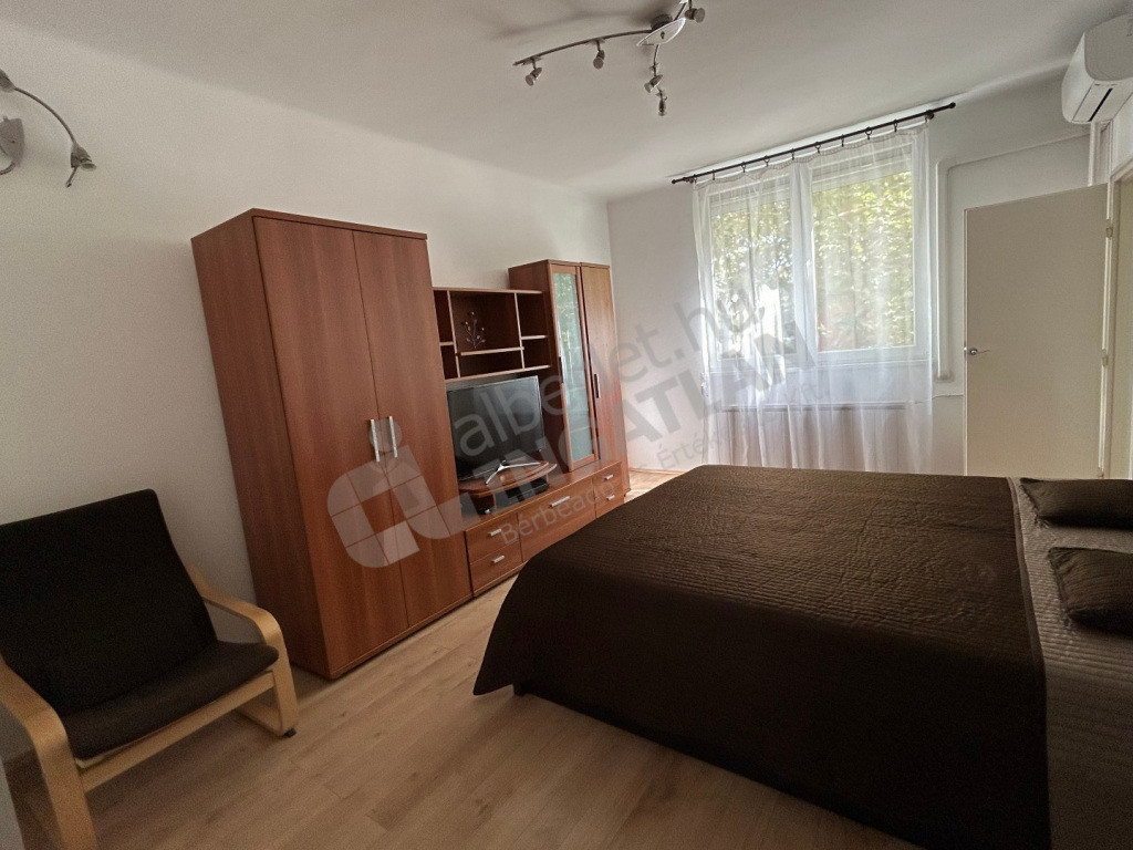 Lobogó utcában két hálószobás, két fürdőszobás, nagy erkélyes, klímás, berendezett lakás kiadó.
