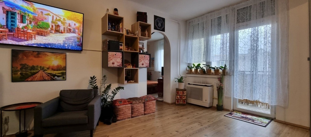 Egy hálószoba, külön konyha, nappali, wc és fürdő szoba egy helységben található.