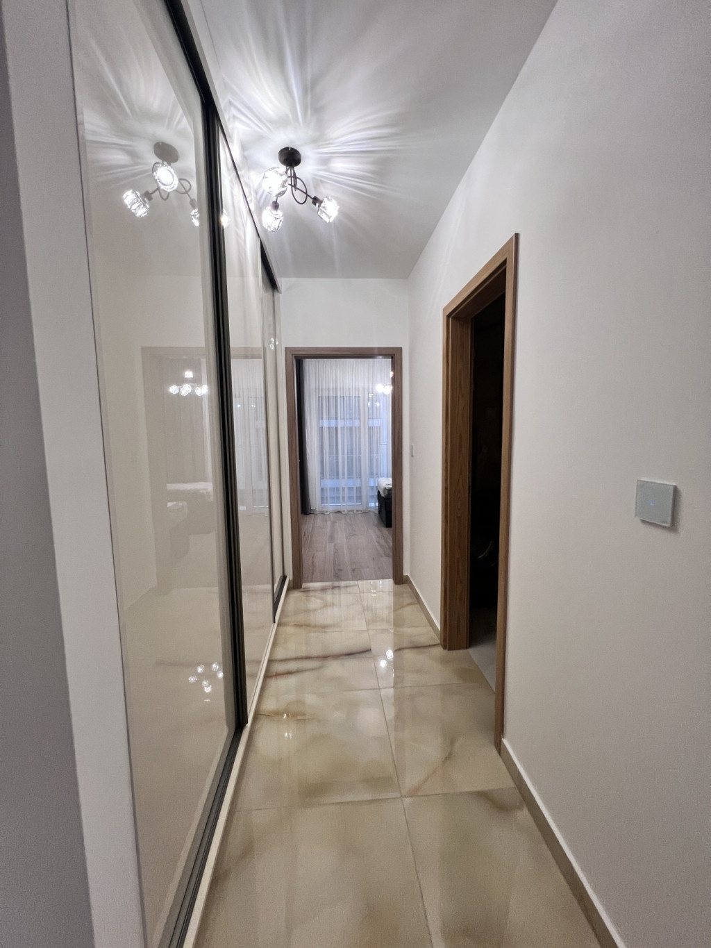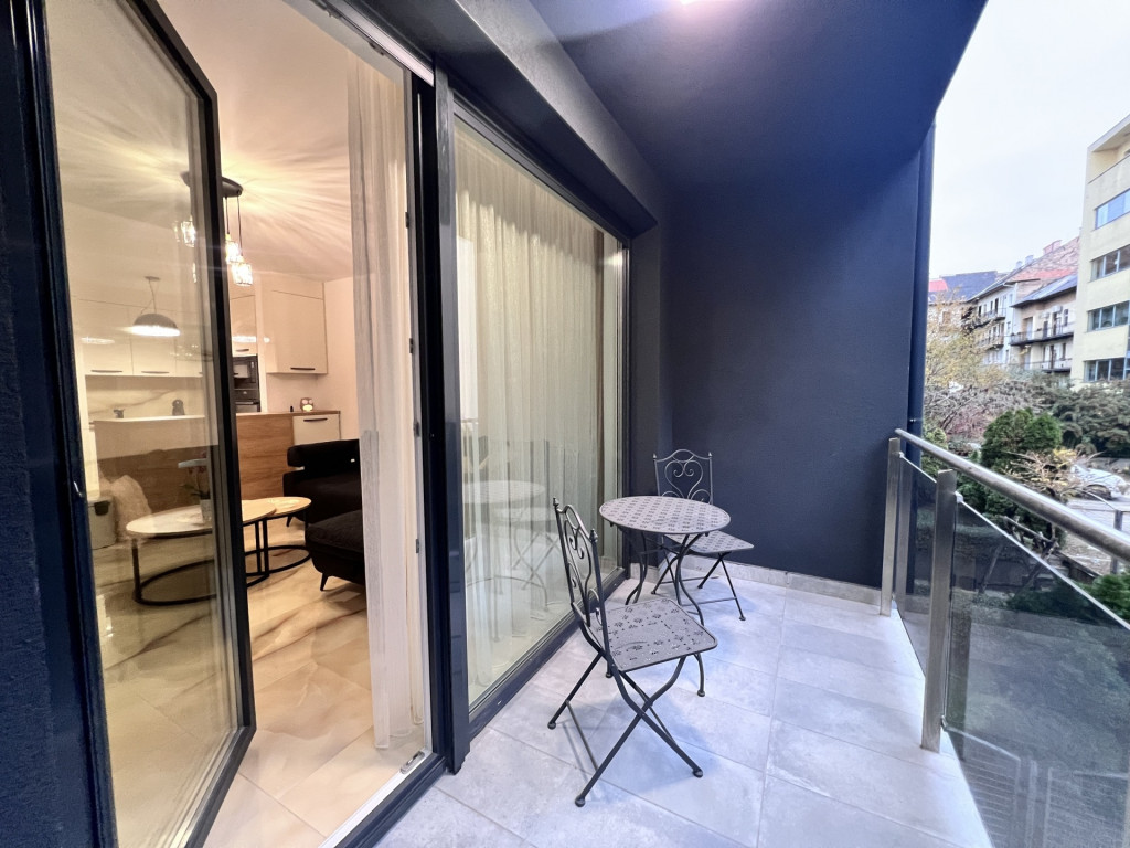 A IX. kerületi Sobieski János utcában, egy frissen átadott új építesű társasház 1. emeletén kiadó ez a CSENDES, 1. emeleti, 53 m2-es lakás + 5 m2 loggiával.