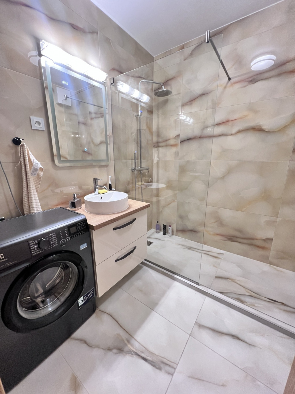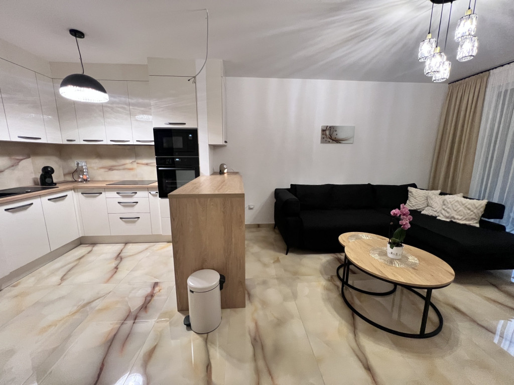 TELJESKÖRŰEN BERENDEZETT (a berendezés még folyamatban van), GÉPESÍTETT (mosógép, mosogatógép, tűzhely, sütő), OKOS TV-vel, ELEKTROMOS REDŐNNYEL felszerelt.
