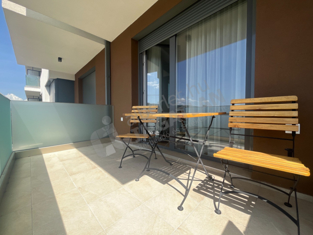 Tágas, 8 nm-es utcafronti terasz, ahová a nappaliból és a hálóból is kiléphetünk