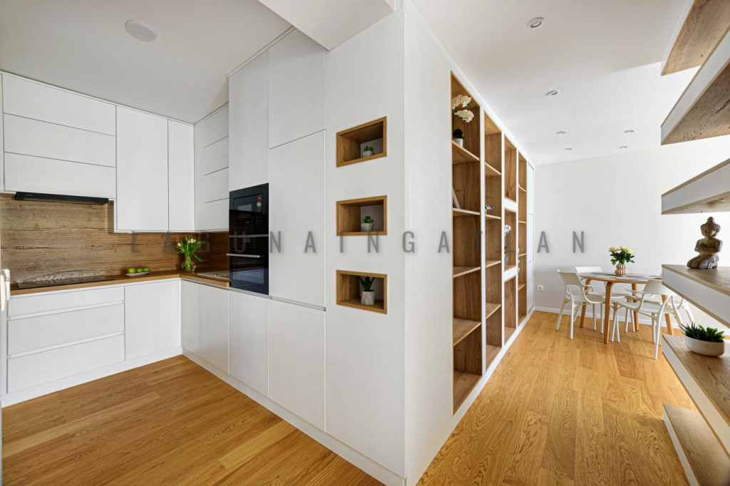 Igényesen és teljes körűen felújított lakás, nappali, két hálószoba, konyha, walk-in zuhanyos fürdőszoba, két wc-s beosztással. A szobák csendes és világos belső kertre néznek, így a központi elhelyezkedés mellett csendes és napos lakás.