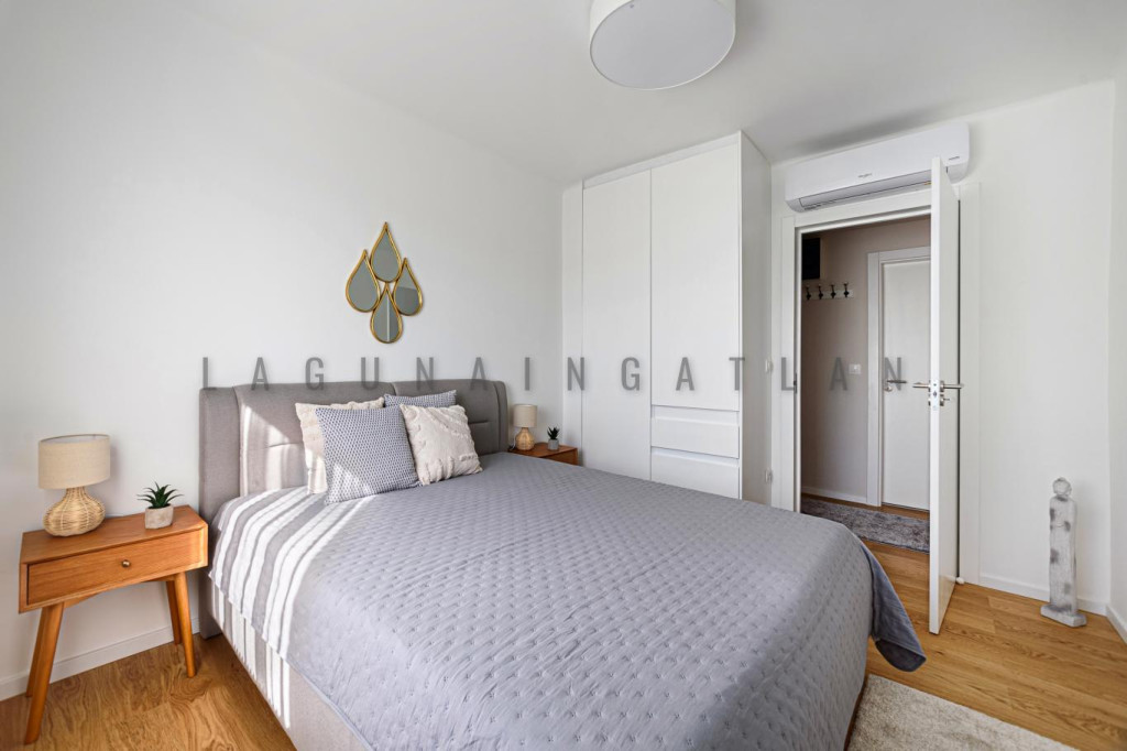 Felszerelt konyha, mosógép, beépített szekrények a hálószobákban, klíma beépítve. Igényes, berendezett lakás, elektromos redőnyök , szúnyogháló, padlófűtés.