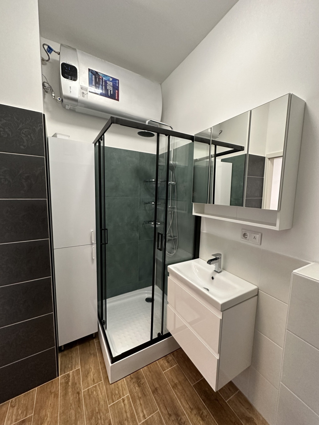 A lakás modern felszereltségű: HŰTŐ–FŰTŐ KLÍMA (H-tarifa – rendkívül olcsó fűtés), ELEKTROMOS PADLÓFŰTÉS, ELEKTROMOS REDŐNYÖK, SZÚNYOGHÁLÓ, beépített konyha, előszoba.