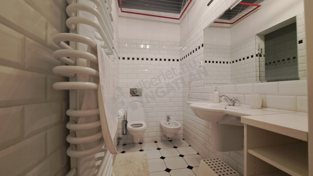 - 6 nm-es fürdőszoba zuhanyzóval, mosdóval és WC-vel és bidével