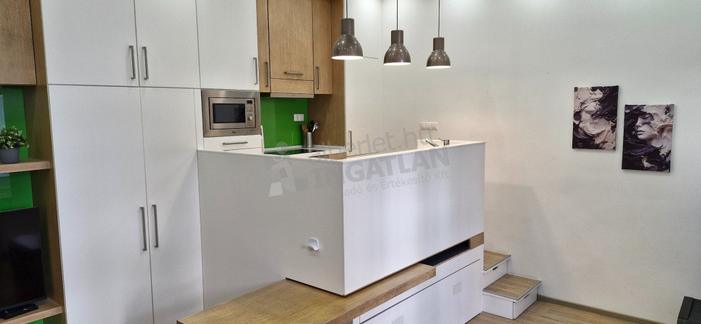 - 40 m² | amerikai konyhás nappali + hálószoba + fürdőszoba.