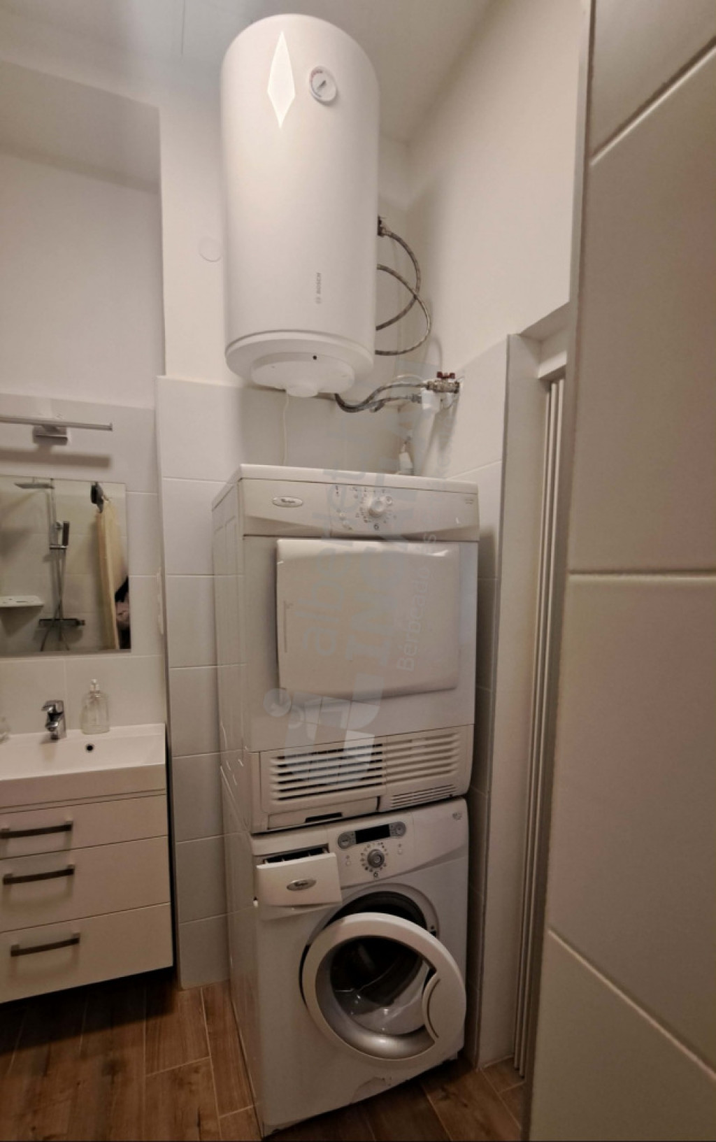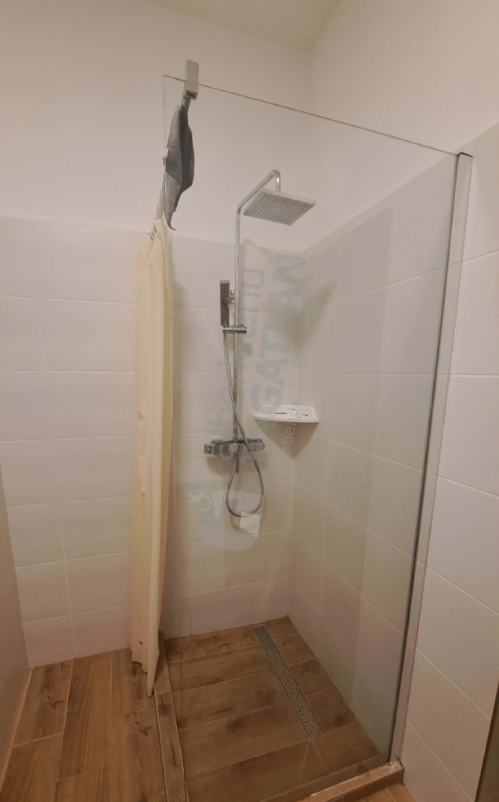 - 5 nm-es fürdőszoba zuhanyzóval, mosdóval és WC-vel, mosógéppel és szárítógéppel