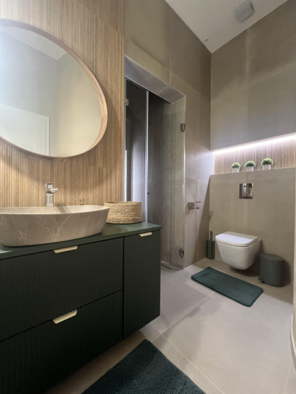 A lakás hűtő -fűtő klímával felszerelt, a meleget télen padlófűtés biztosítja.