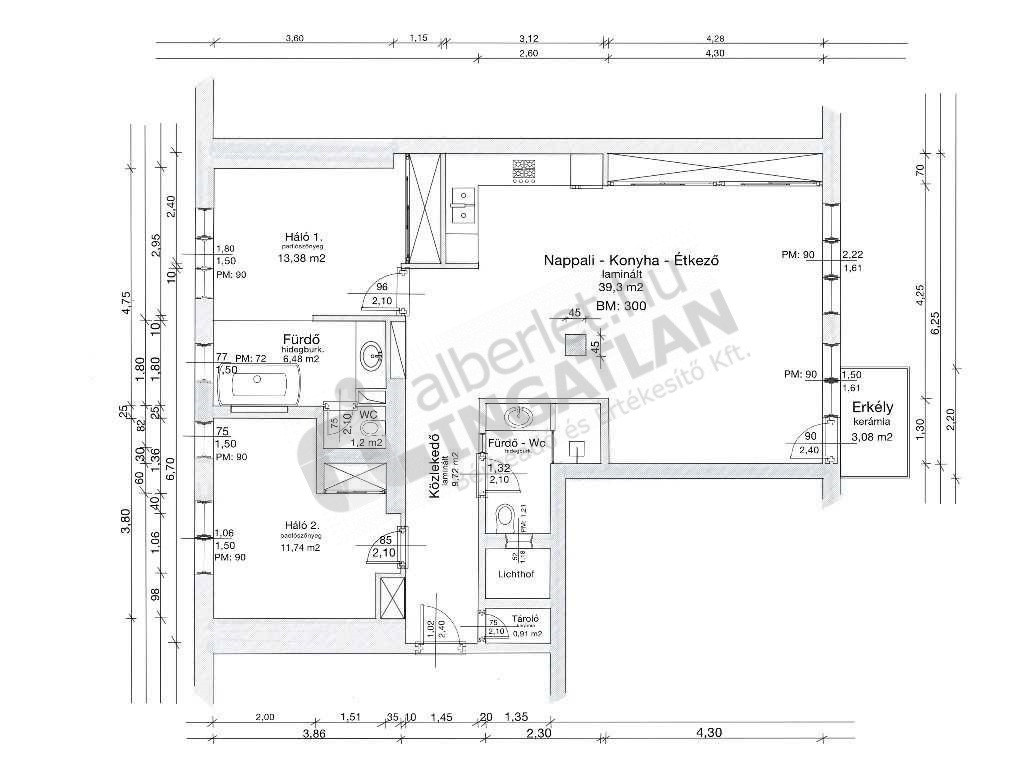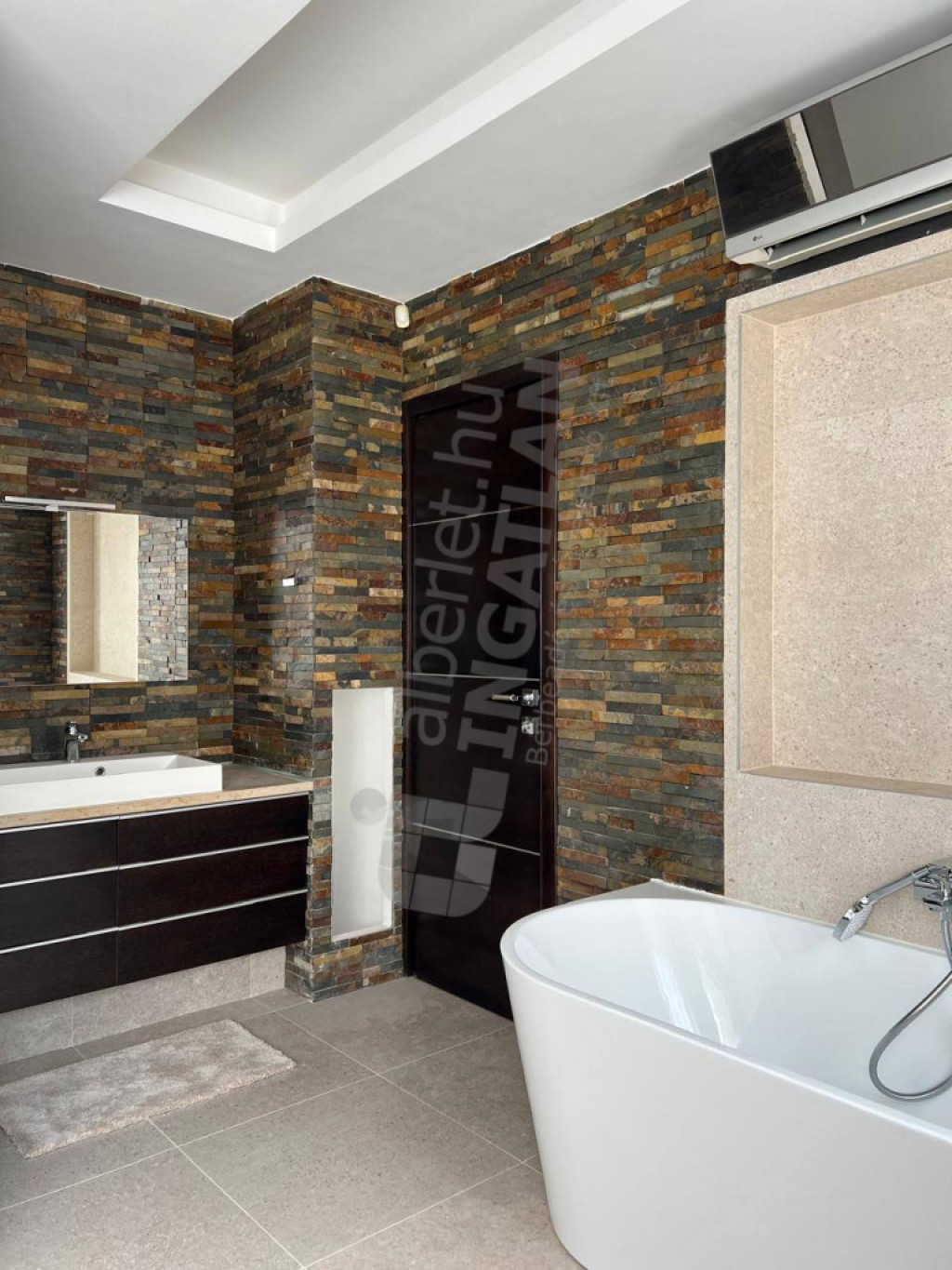 Két hálószoba, két fürdőszoba, erkély, légkondi, mosogatógép.