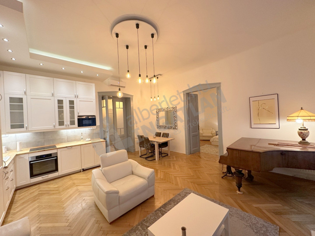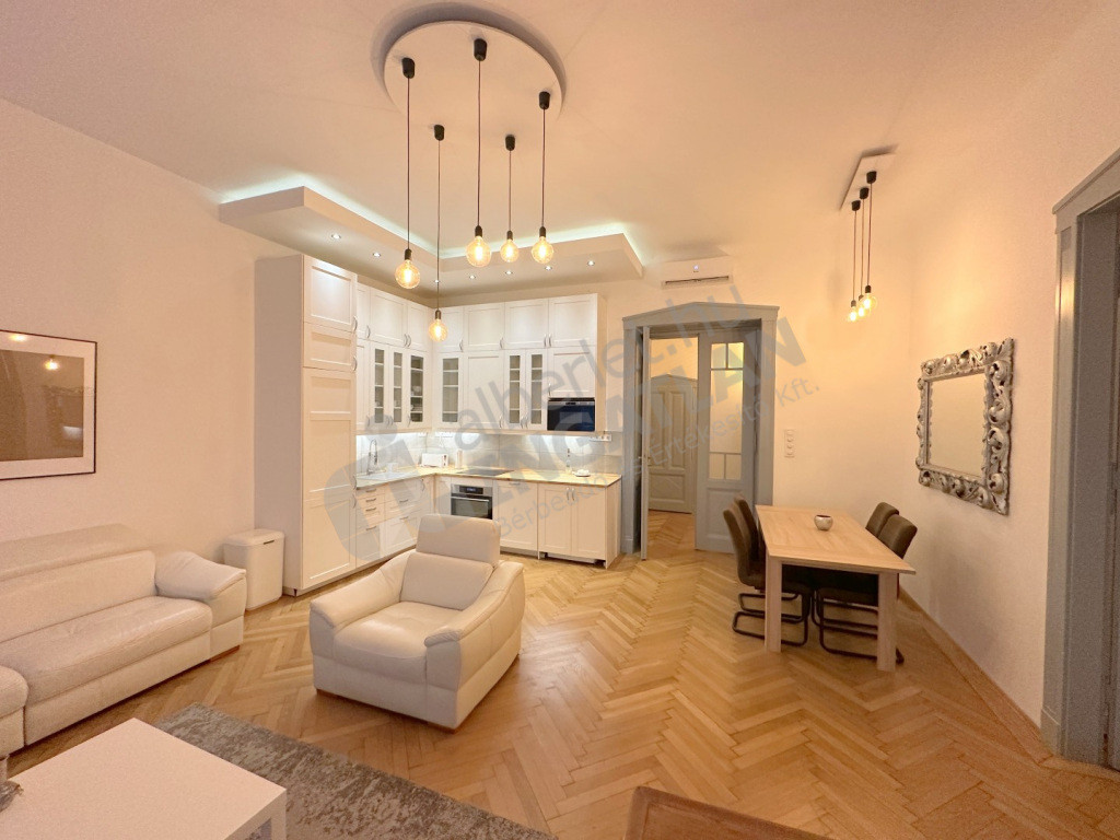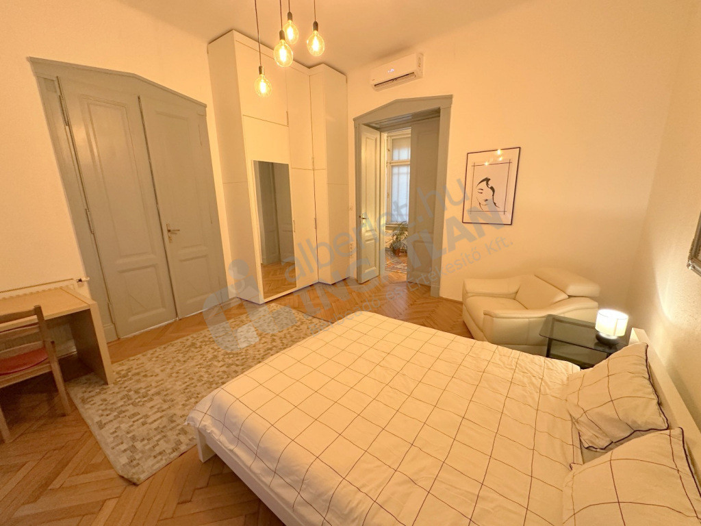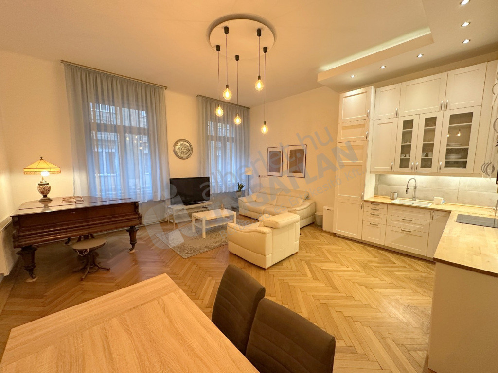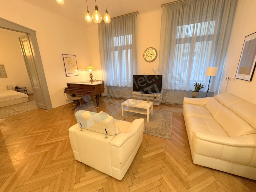 Haris közben kiadó egy két hálószobás, berendezett, elegáns, de otthonos polgári lakás.