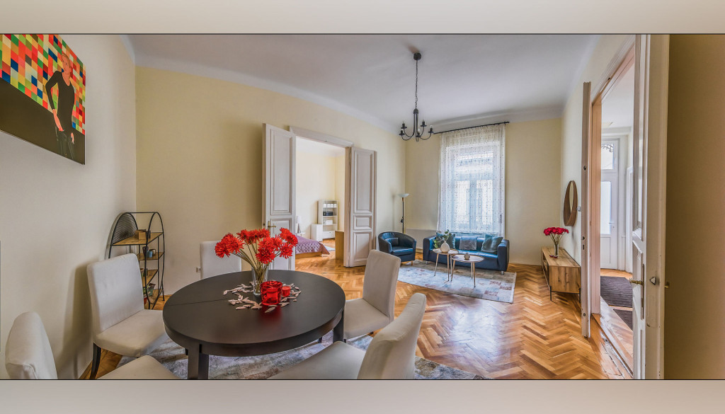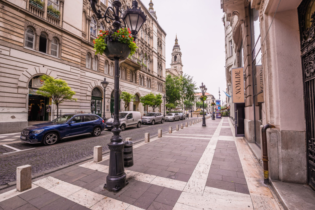 KISÁLLATTAL IS KÖLTÖZHETŐ, 88 négyzetméteres, nappali plusz 2 hálószobás, elegáns lakás kkiadó a Hercegprímás utcában, közvetlen a Bazilika közelében. Az ingatlan a társasház 4.emeletén található, lift van. Az ablakok a csendes, belső udvarra nézne. A fűtést gázkazán biztosítja, a lakás klimatizált.